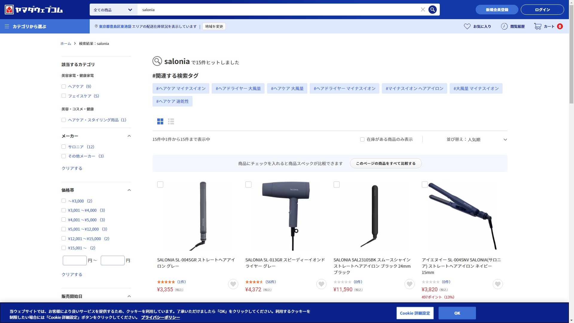 お調べしたところ現在、ヤマダデンキではsaloniaに関連する商品を買うことが可能です。
