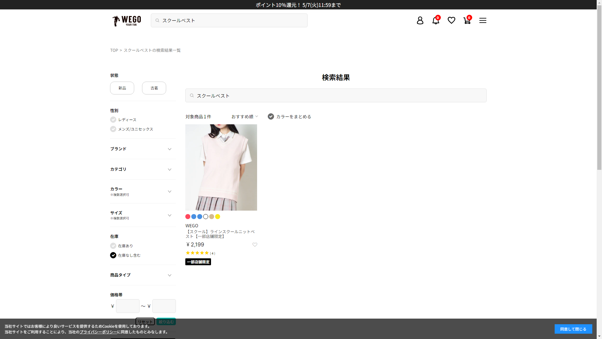 お調べしたところ残念ながら現在ではWEGOにスクールベストは販売されていませんでした。