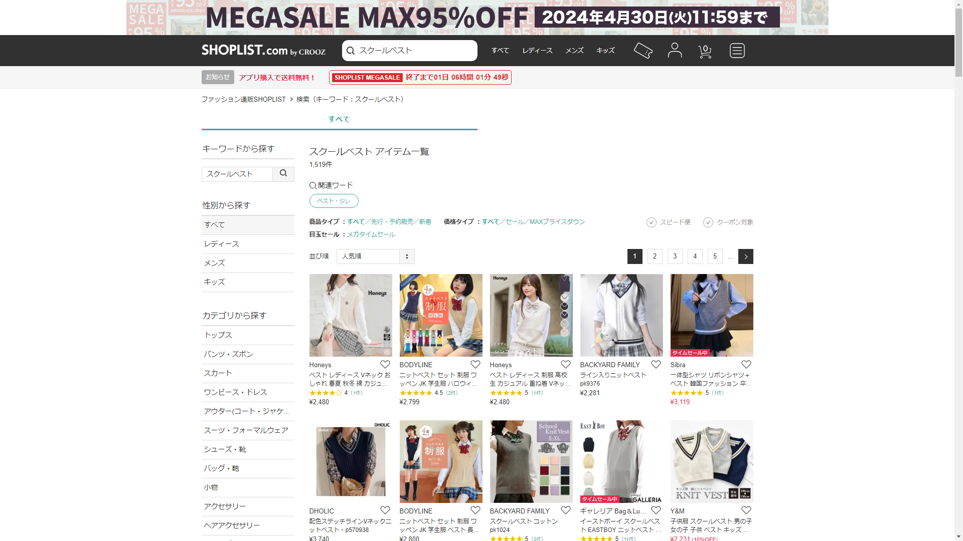 お調べしたところ現在、SHOPLISTではスクールベストの関連する商品が販売されています。