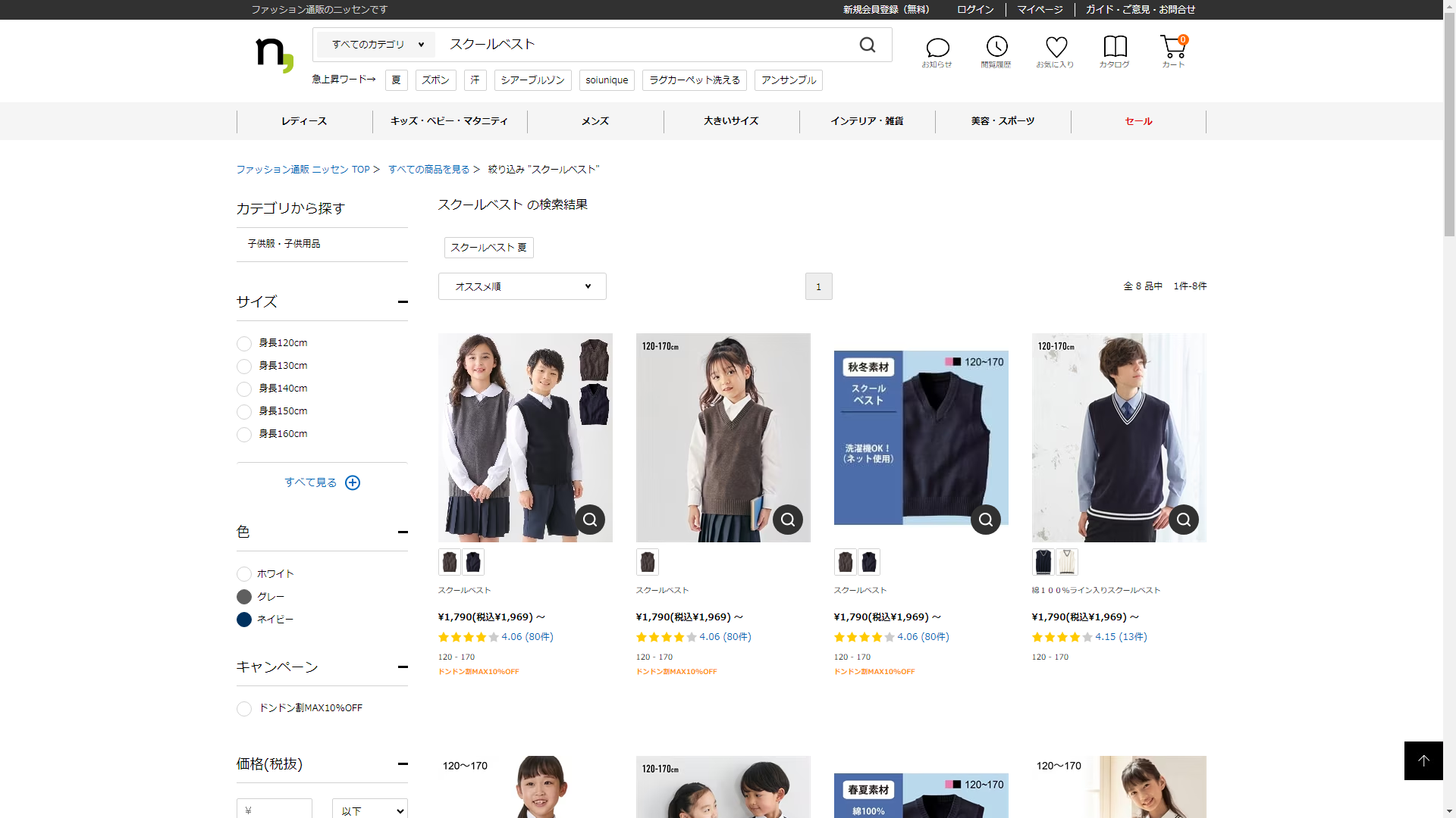 お調べしたところ現在、ニッセンではスクールベストに関連する商品が販売されています。