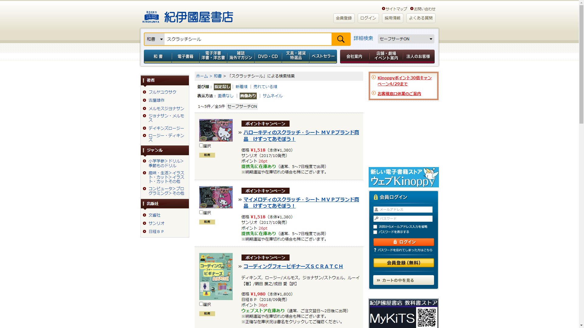 お調べしたところ現在、紀伊國屋書店ではスクラッチシールに関連する商品を買うことが可能です。