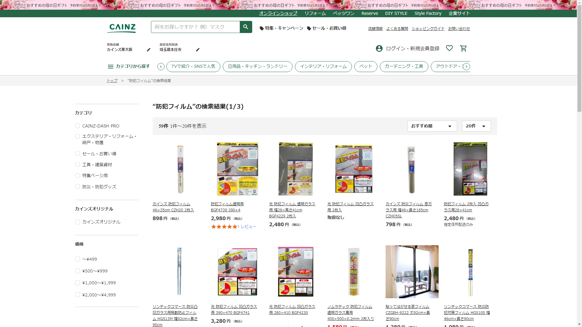 防犯フィルムはCAINZに売っています