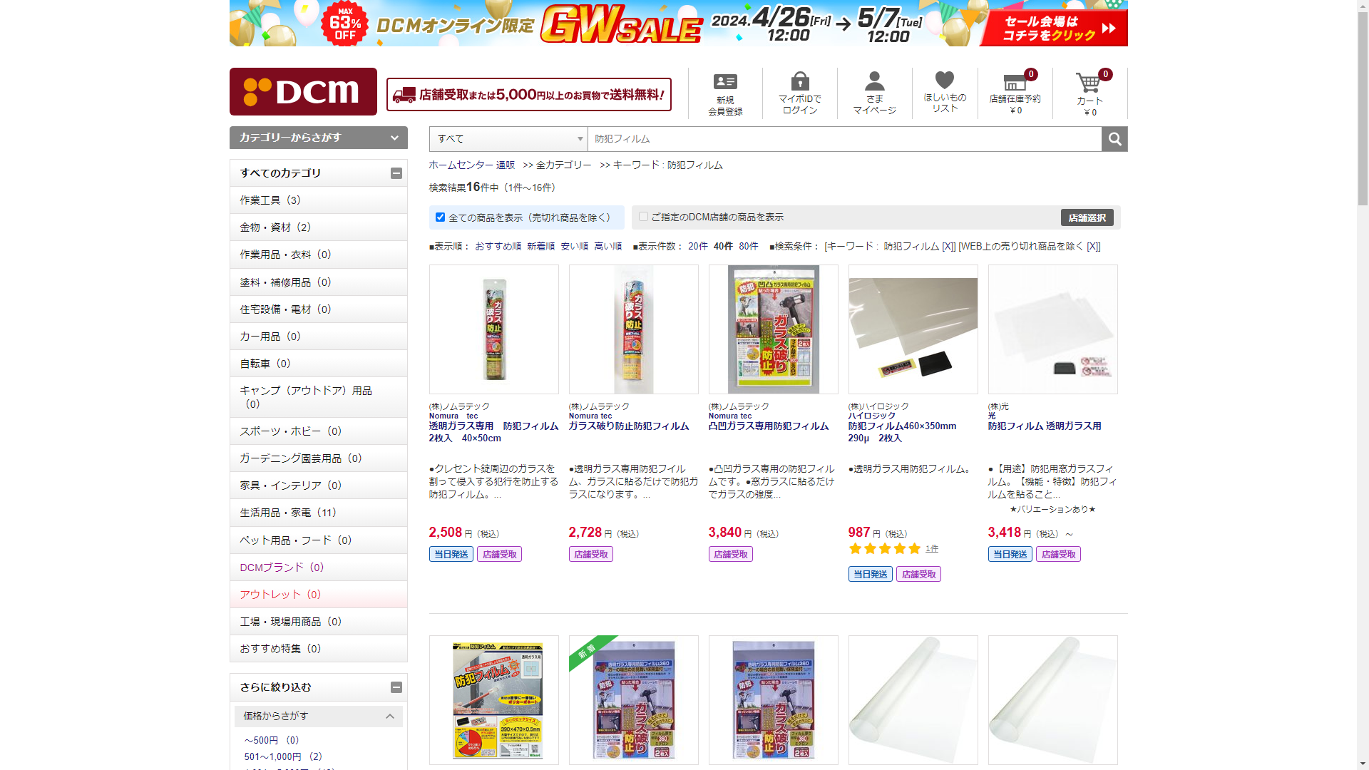 防犯フィルムはDCMで販売されています