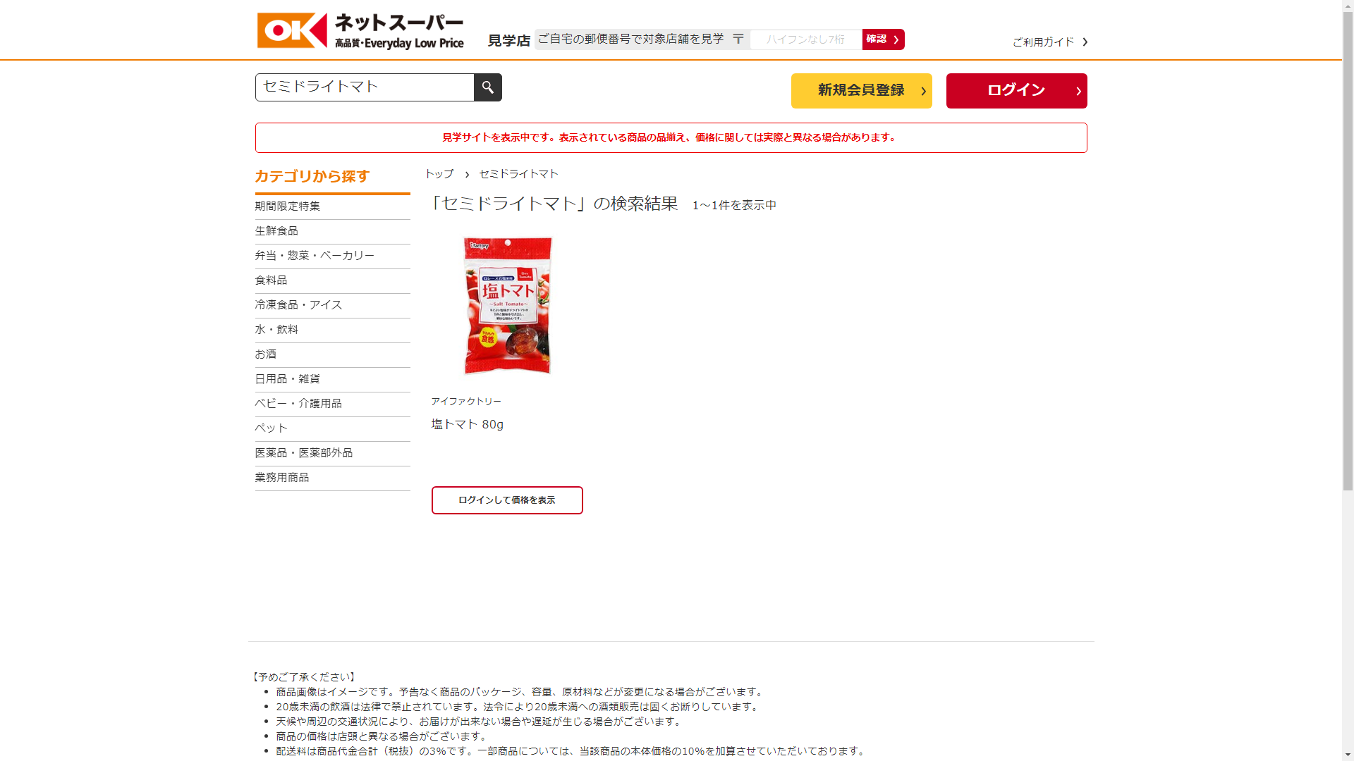 お調べしたところ現在OKネットスーパーではセミドライトマトに関連する商品が販売されています。
