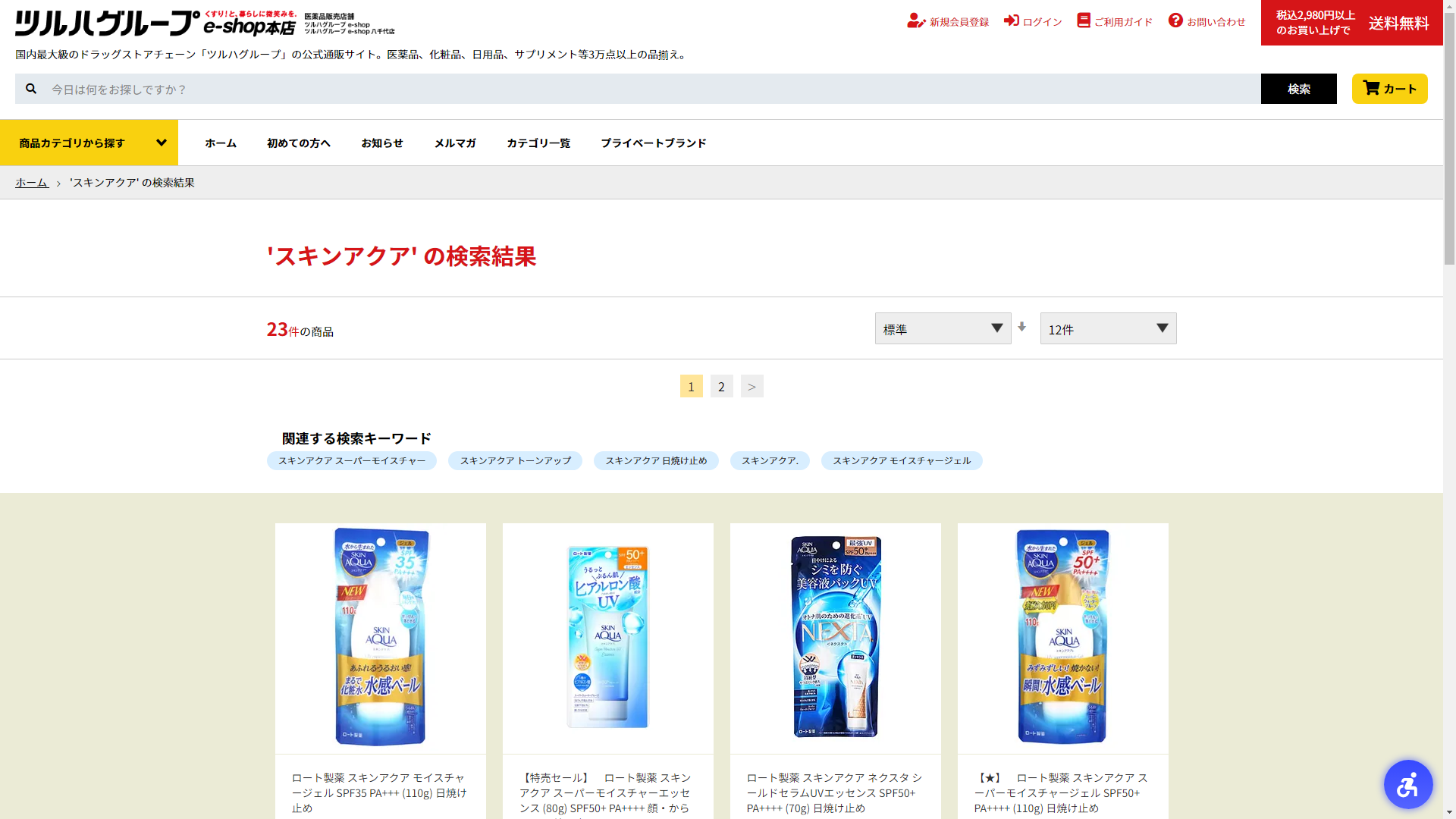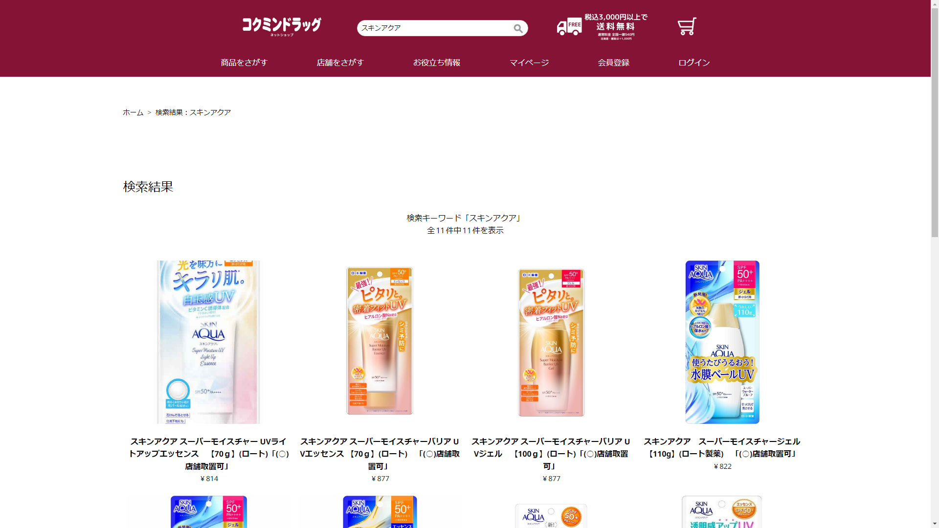 お調べしたところ現在、コクミンドラッグではスキンアクアの関連する商品が販売されています。