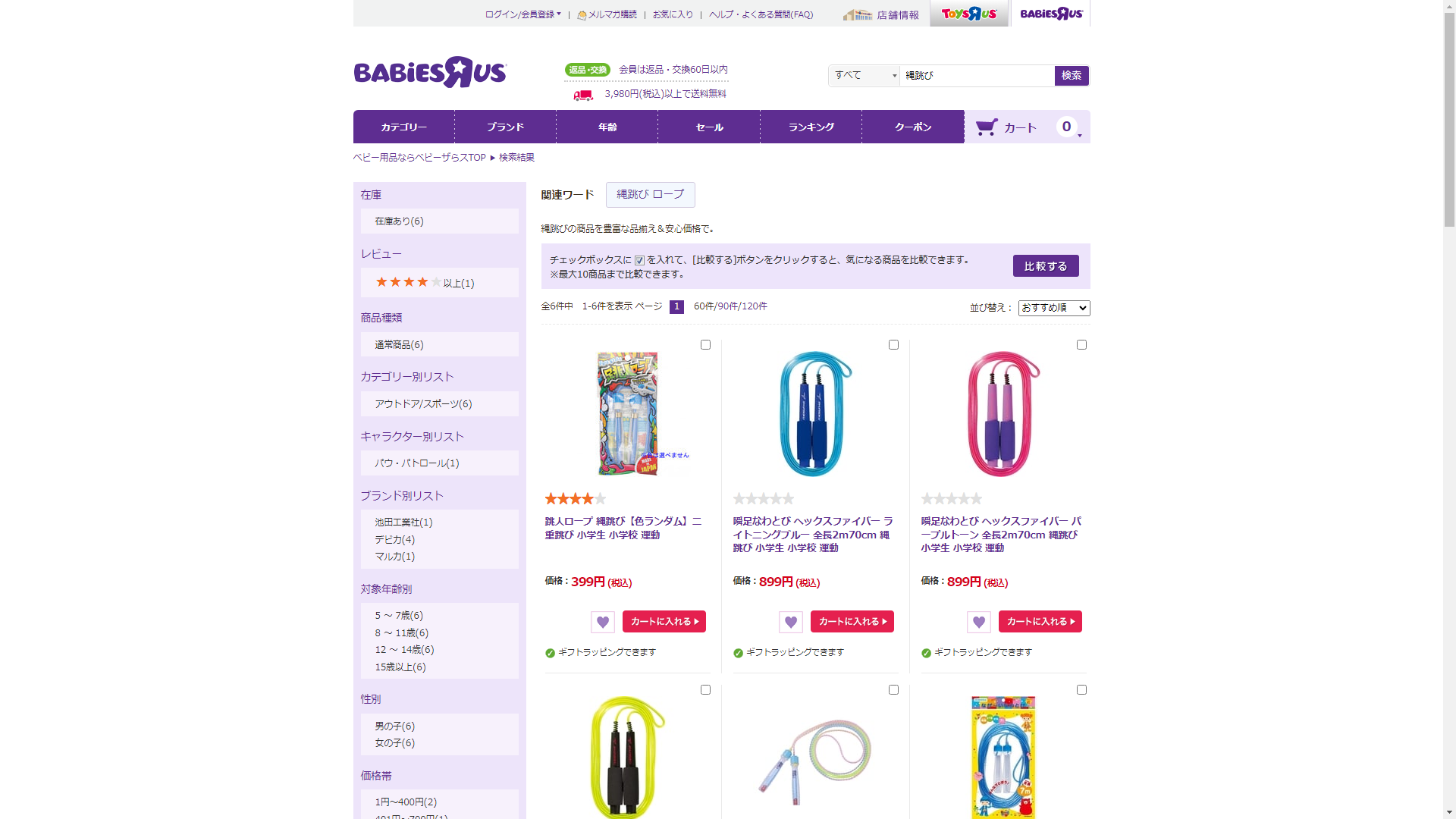 お調べしたところ現在、トイザらスでは縄跳びに関連する商品を買うことが可能です。