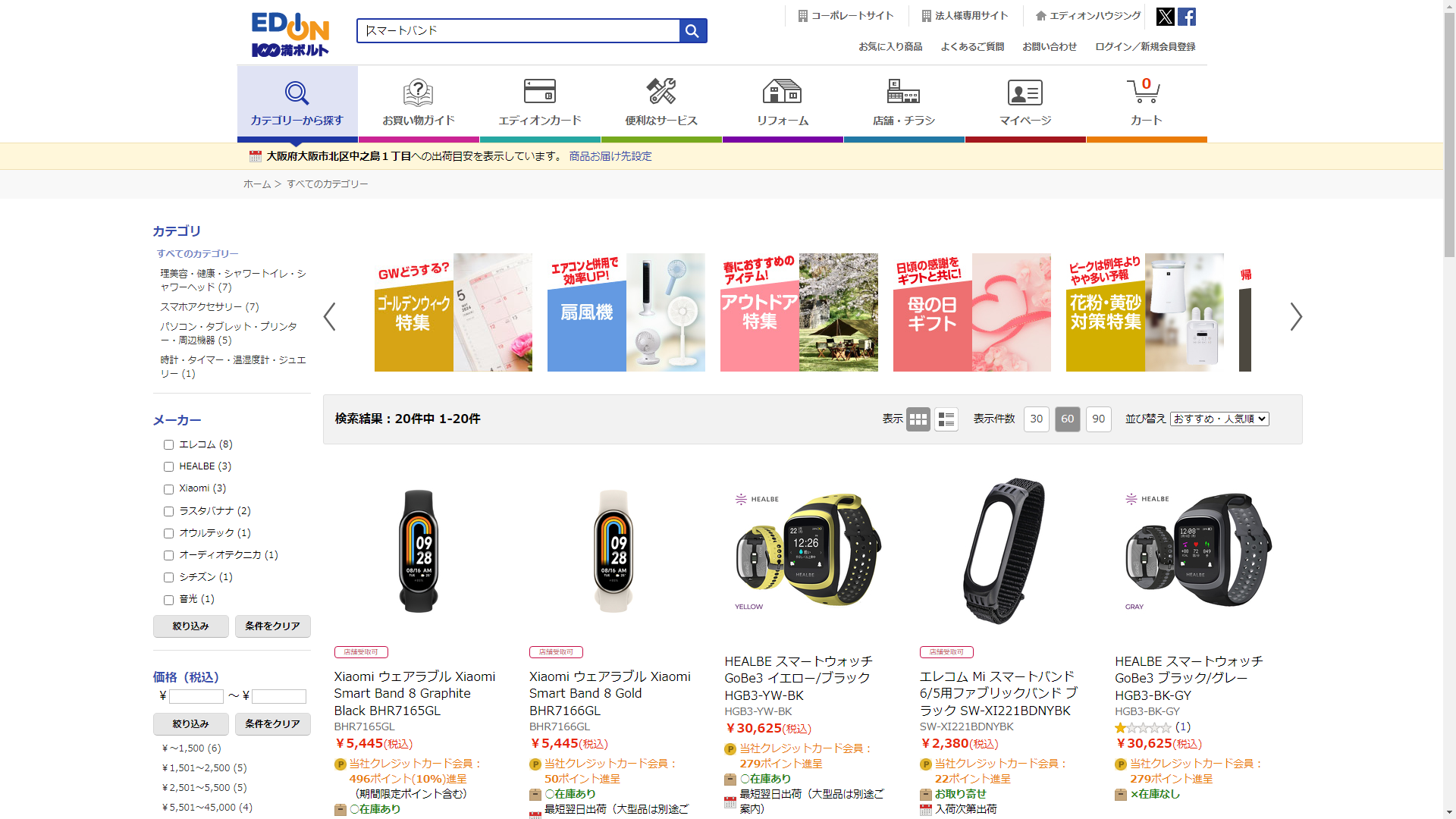 スマートバンドはEDIONで販売されています