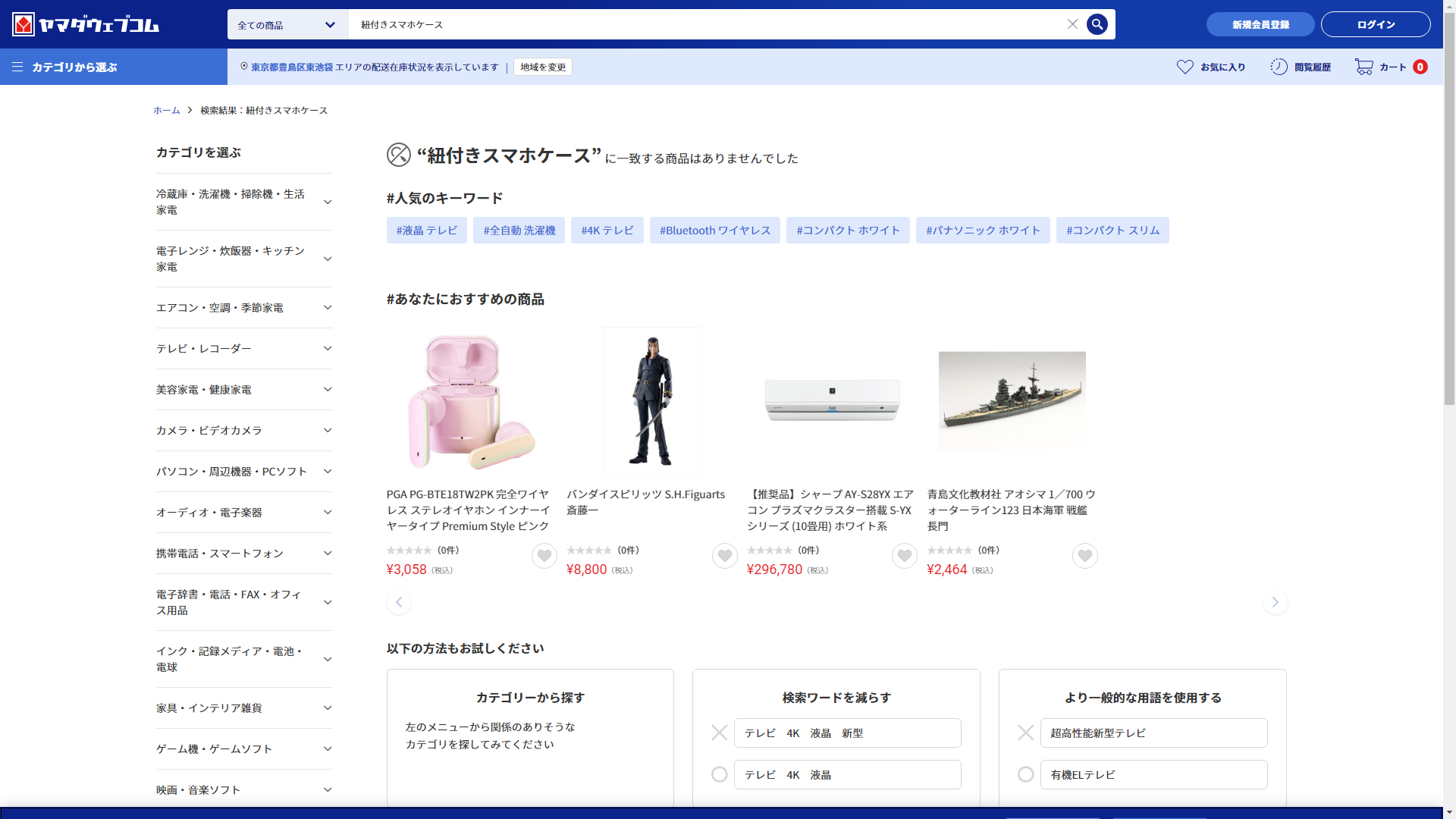 紐付きスマホケースは家電・電化製品のコジマには売っていません