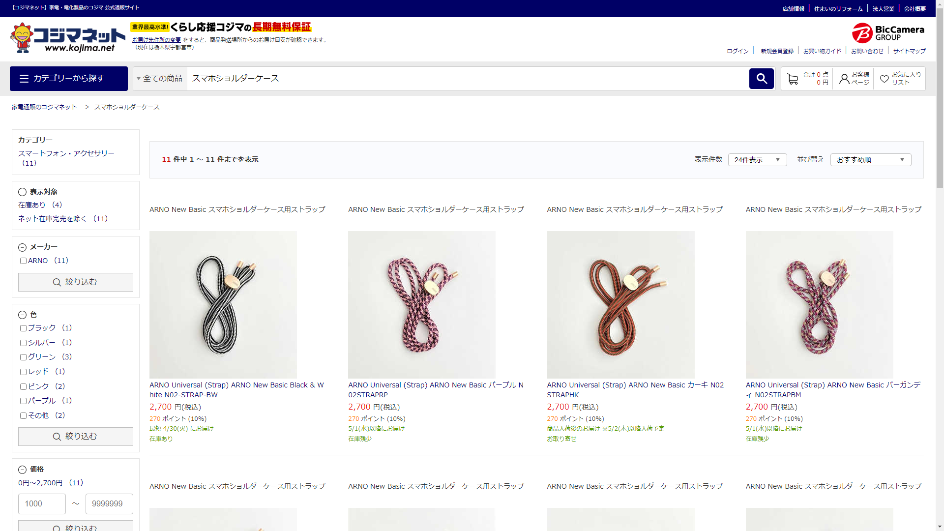 お調べしたところ現在、家電・電化製品のコジマではスマホショルダーケースの関連する商品が販売されています。