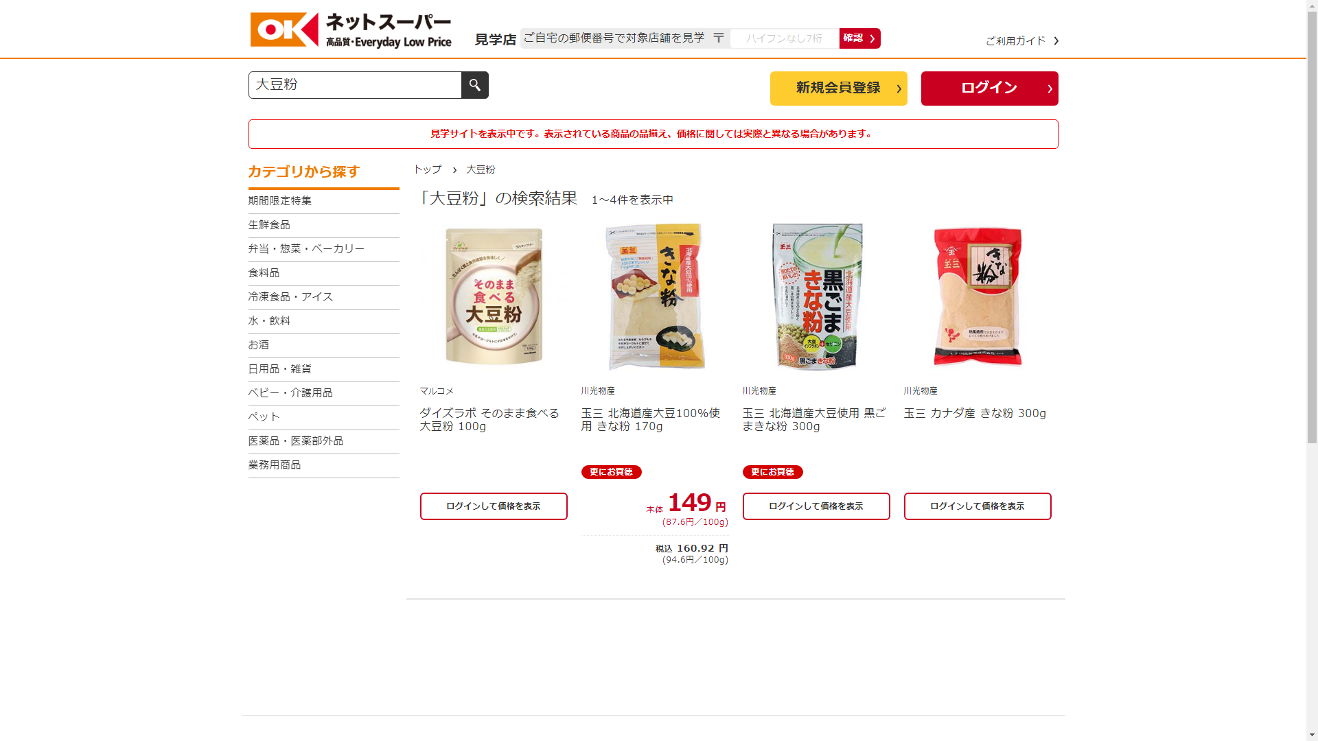 大豆粉はオーケーネットスーパーで販売されています