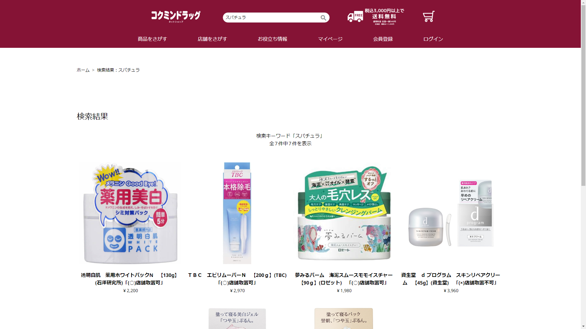 お調べしたところ現在、コクミンドラッグではスパチュラの関連する商品が販売されています。