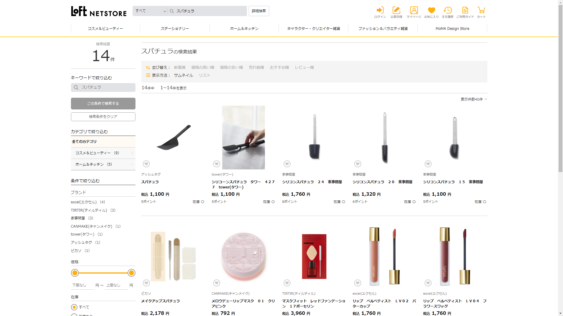 お調べしたところ現在、ロフトではスパチュラに関連する商品が販売されています。