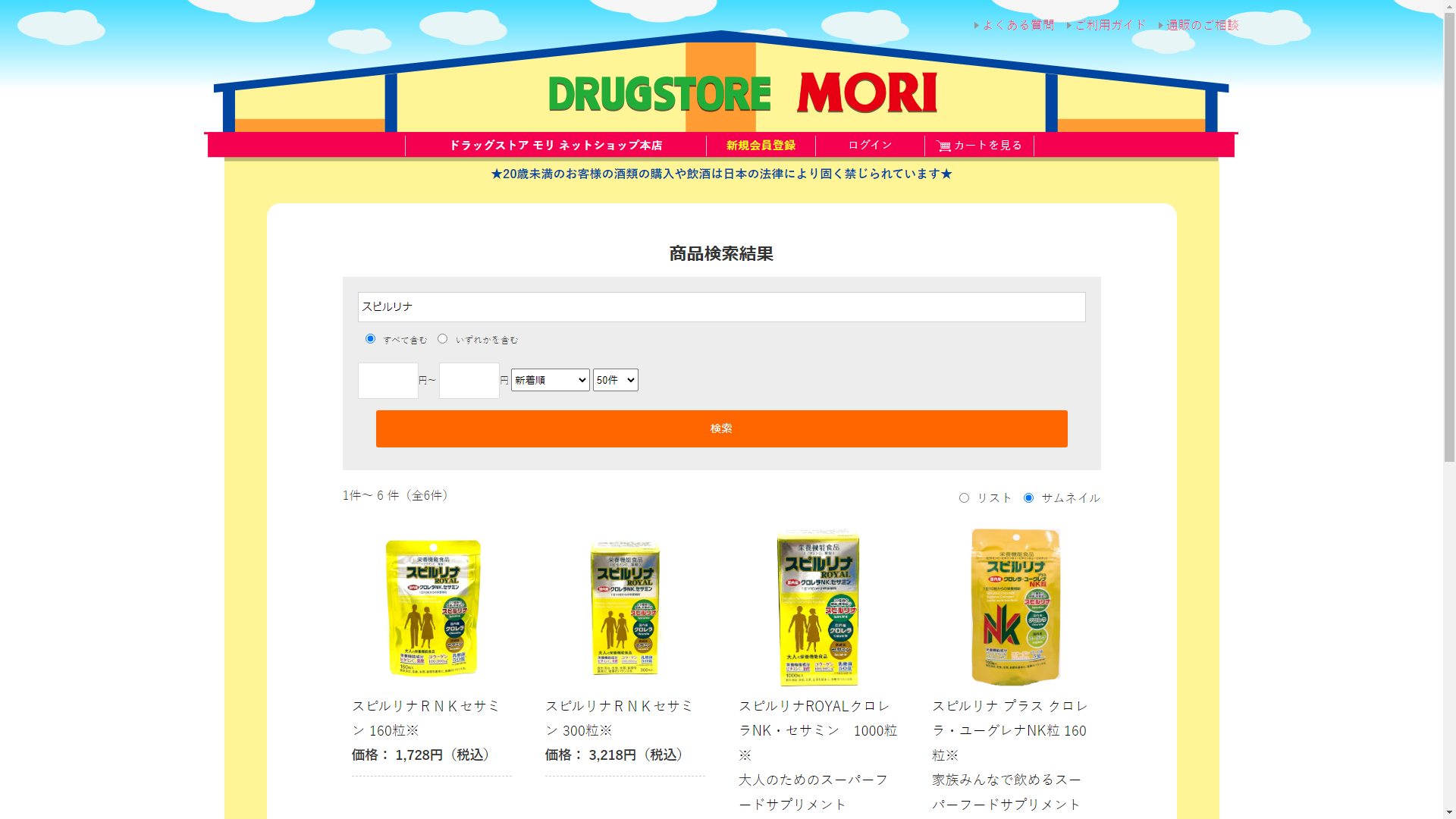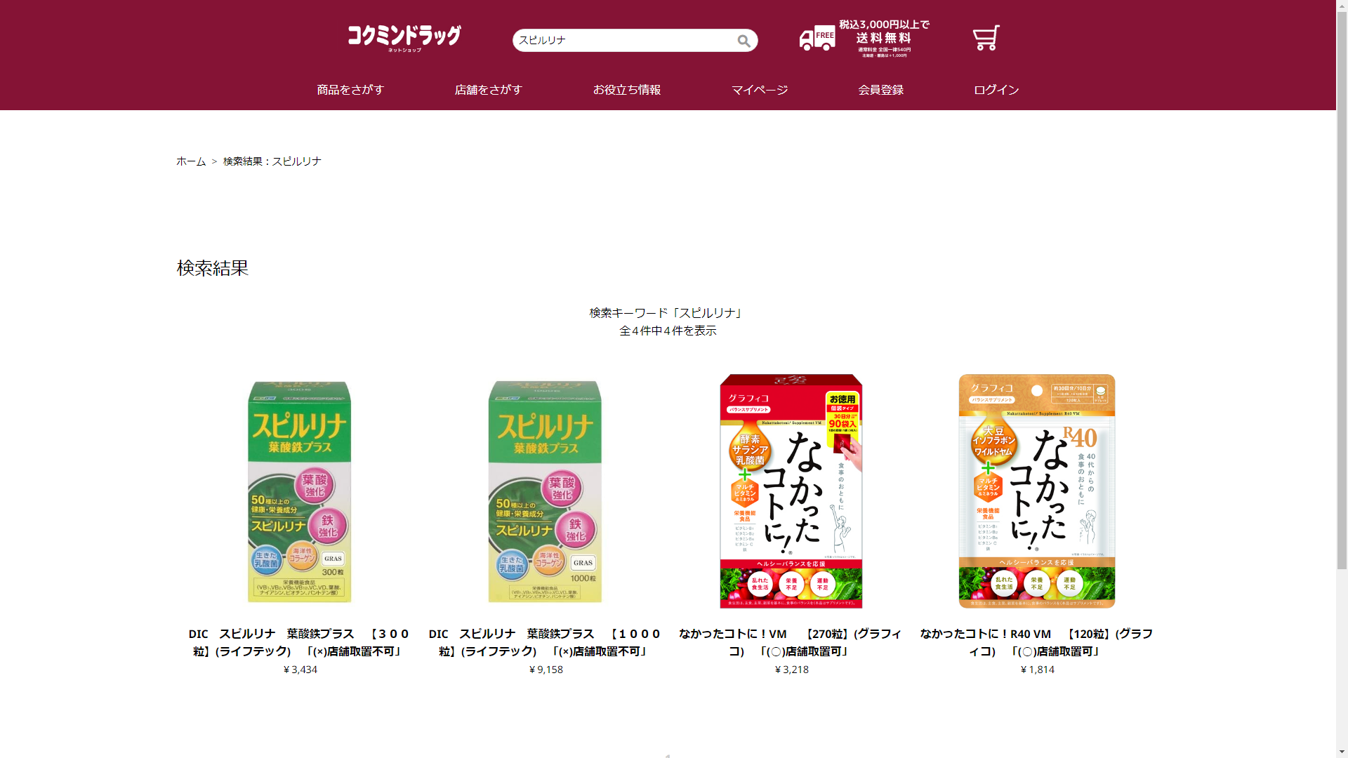 お調べしたところ現在、コクミンドラッグではスピルリナの関連する商品が販売されています。