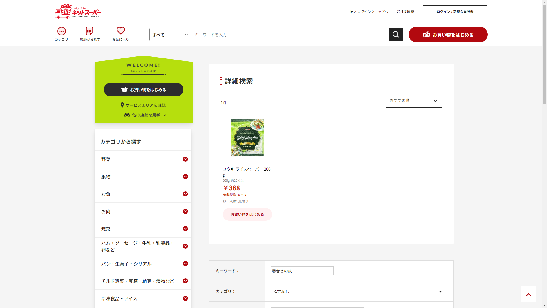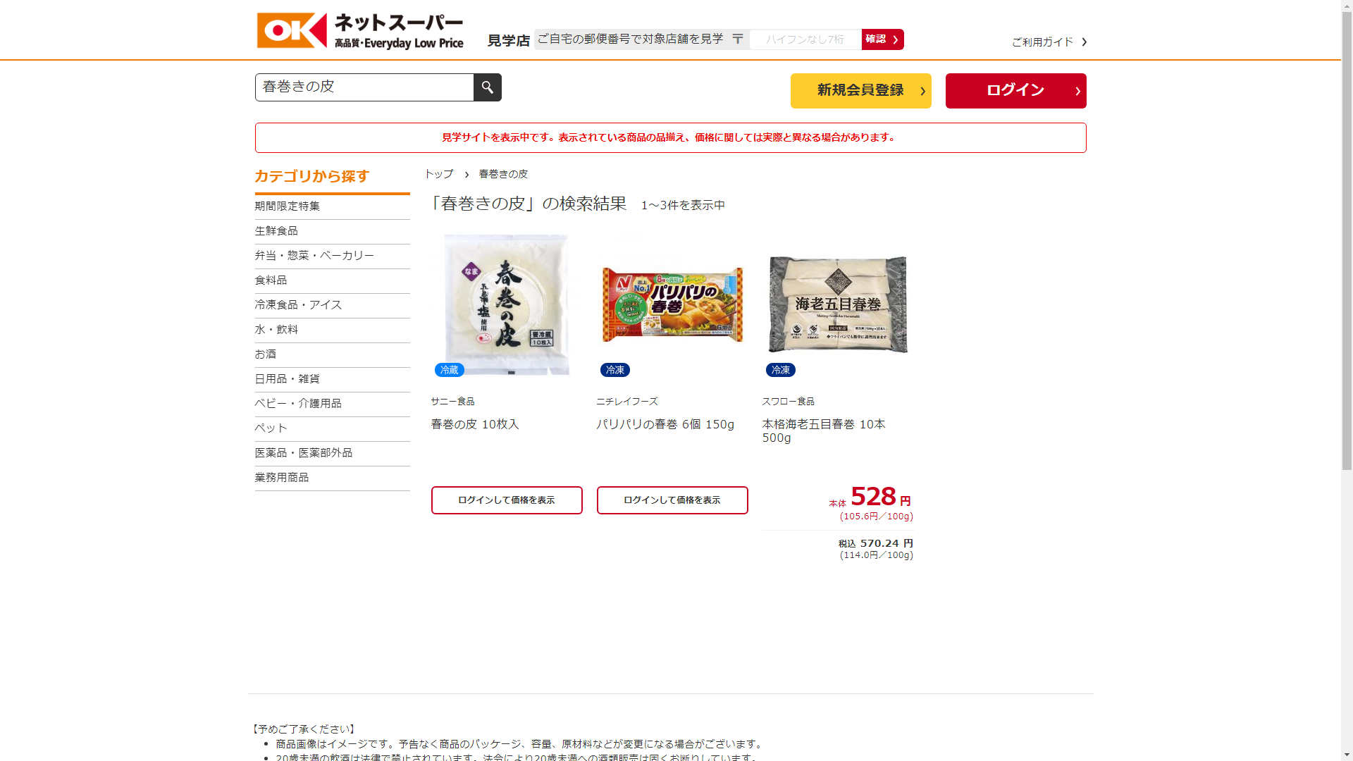 お調べしたところ現在OKネットスーパーでは春巻きの皮に関連する商品が販売されています。