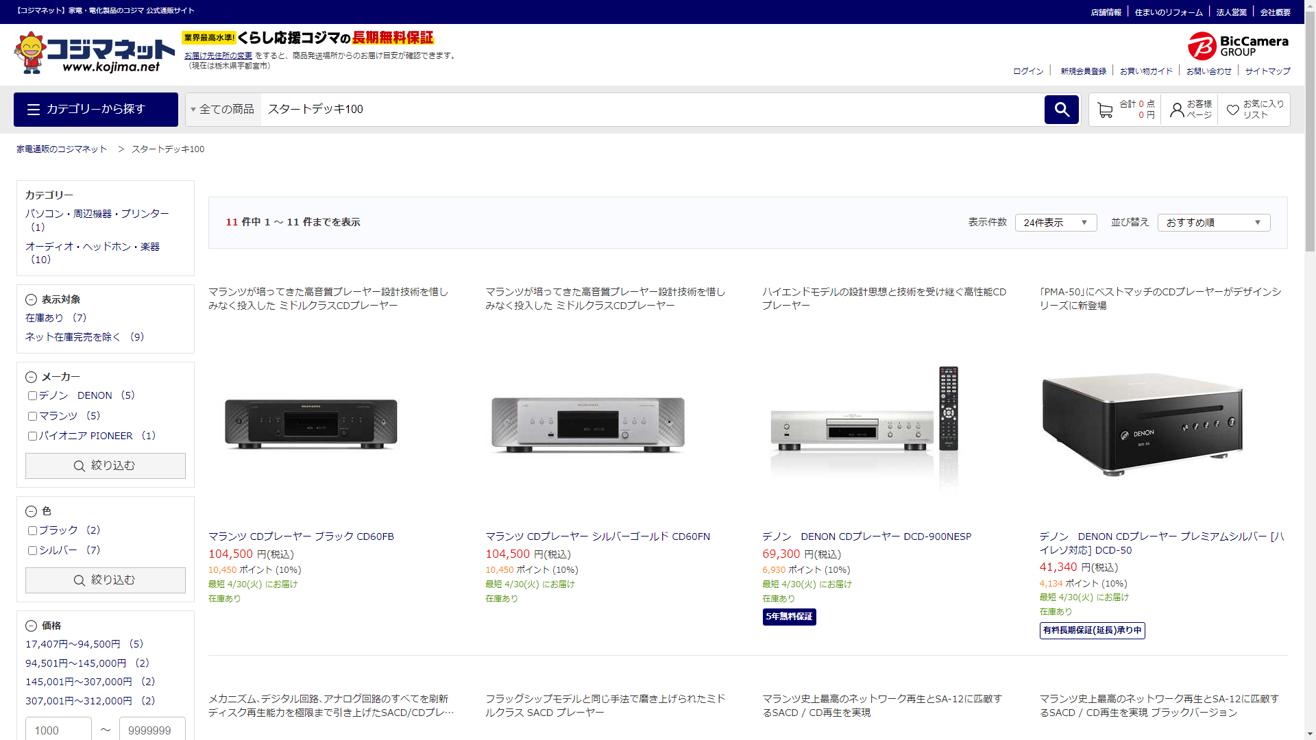 お調べしたところ現在、家電・電化製品のコジマではスタートデッキ100に関連する商品が販売されています。