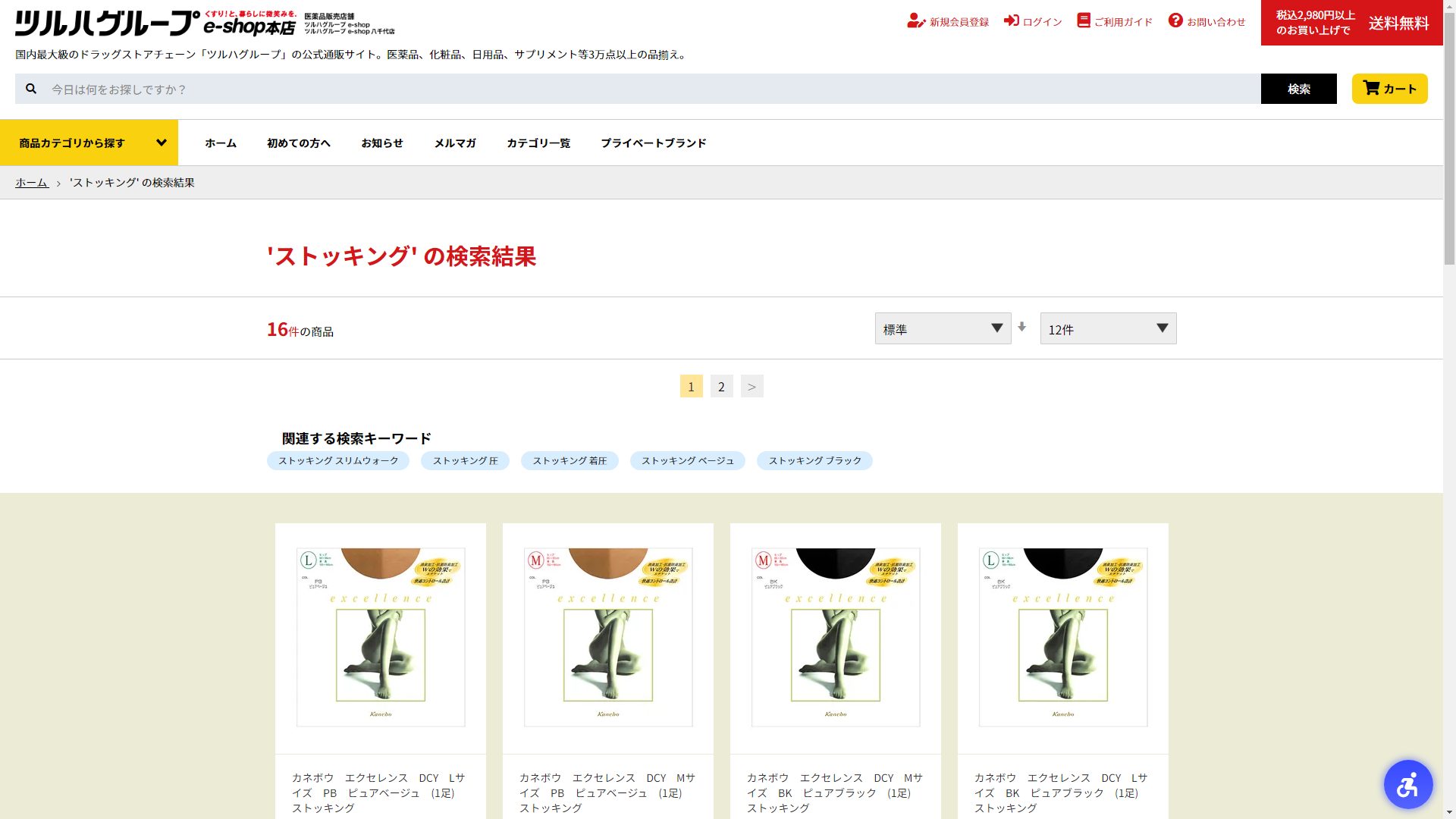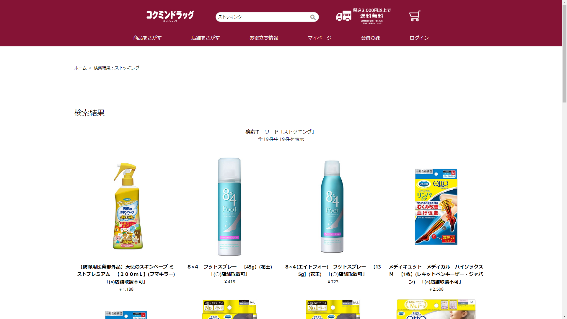 お調べしたところ現在、コクミンドラッグではストッキングの関連する商品が販売されています。
