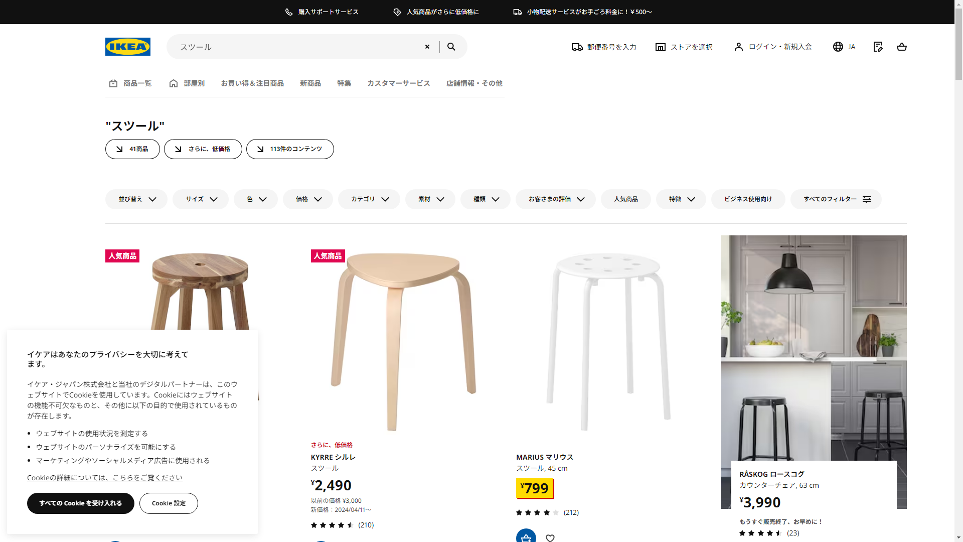 お調べしたところ現在、IKEAではスツールに関連する商品を買うことが可能です。