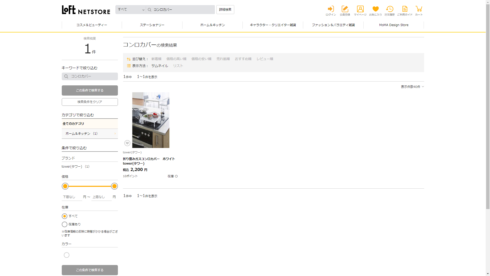 お調べしたところ現在、ロフトではコンロカバーに関連する商品が販売されています。
