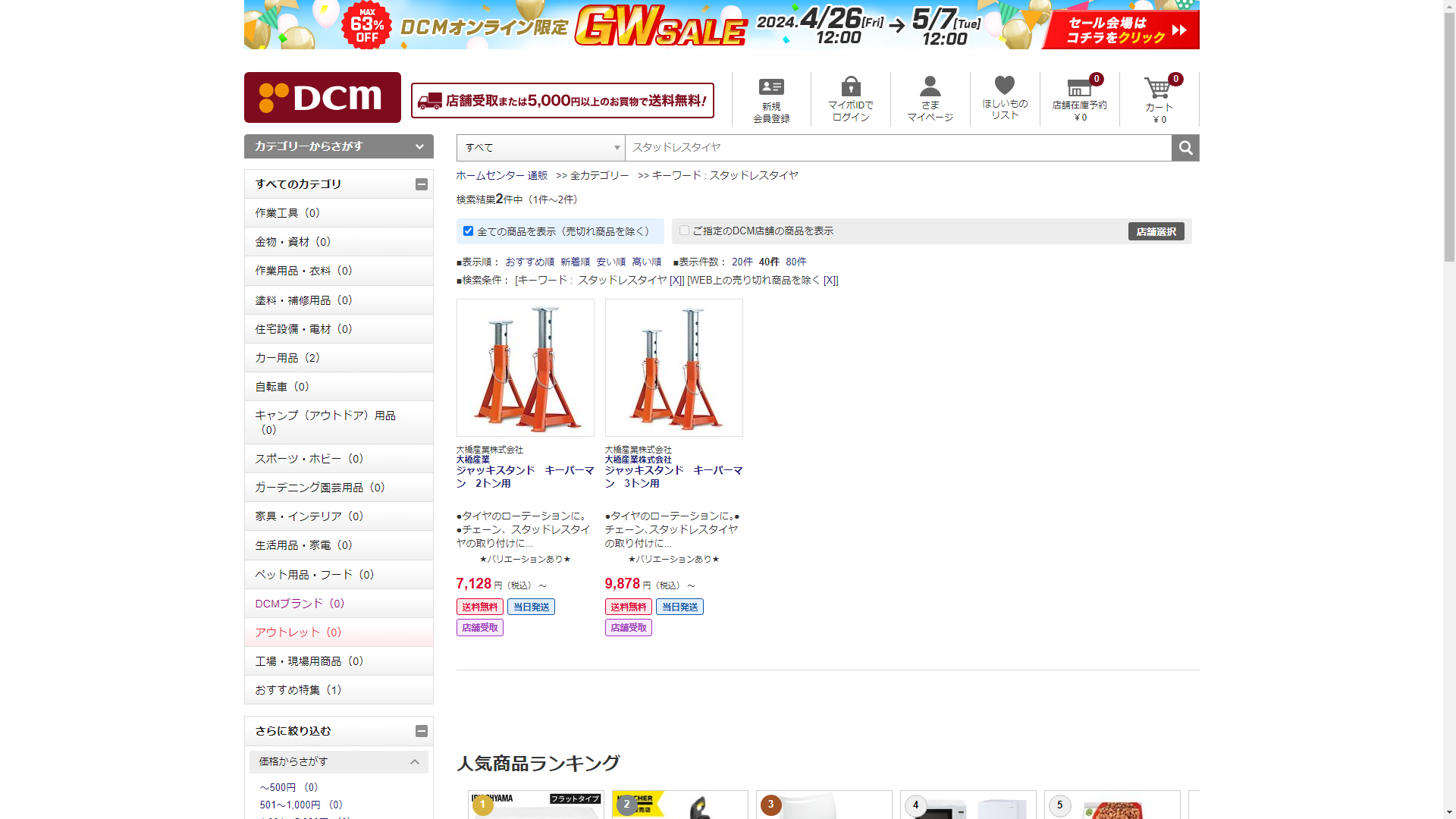 お調べしたところ現在、DCMではスタッドレスタイヤに関連する商品が販売されています。