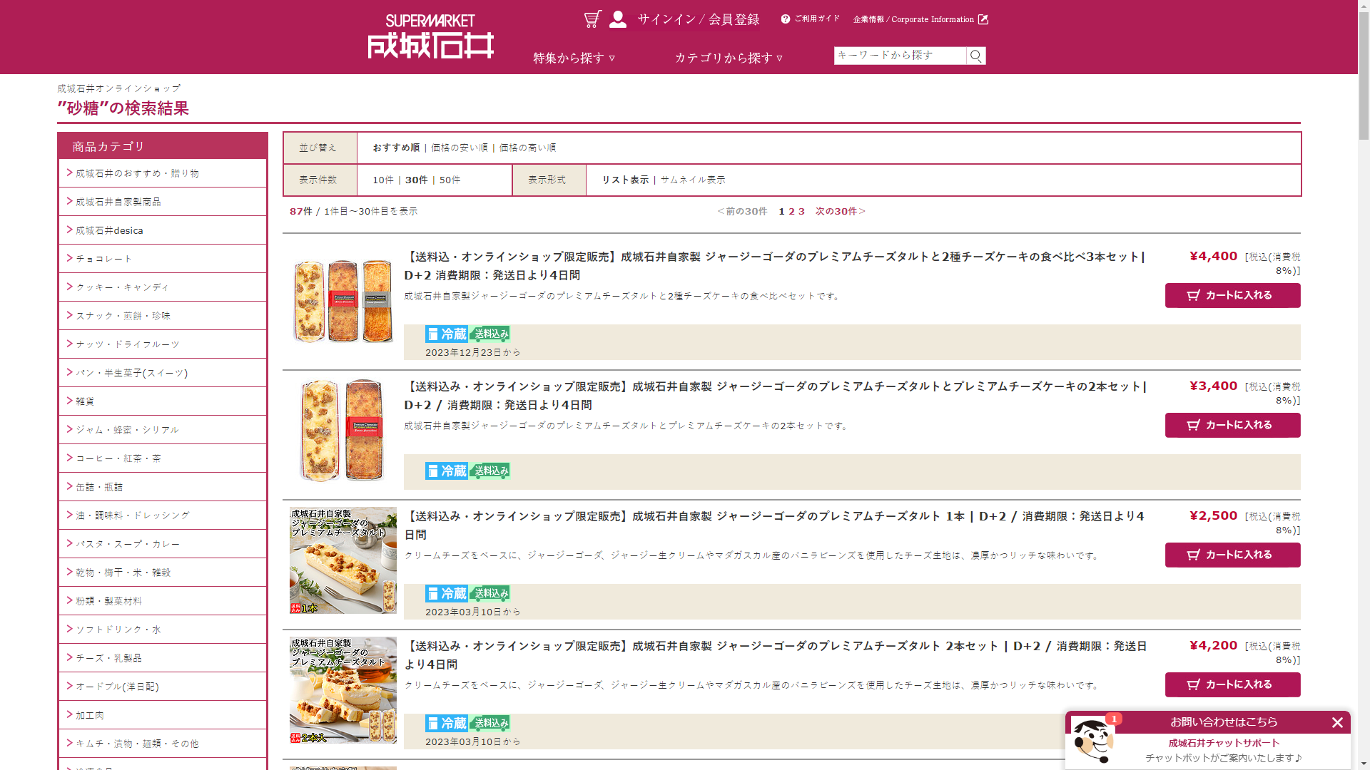 お調べしたところ現在、成城石井公式オンラインショップでは砂糖に関連する商品を買うことが可能です。