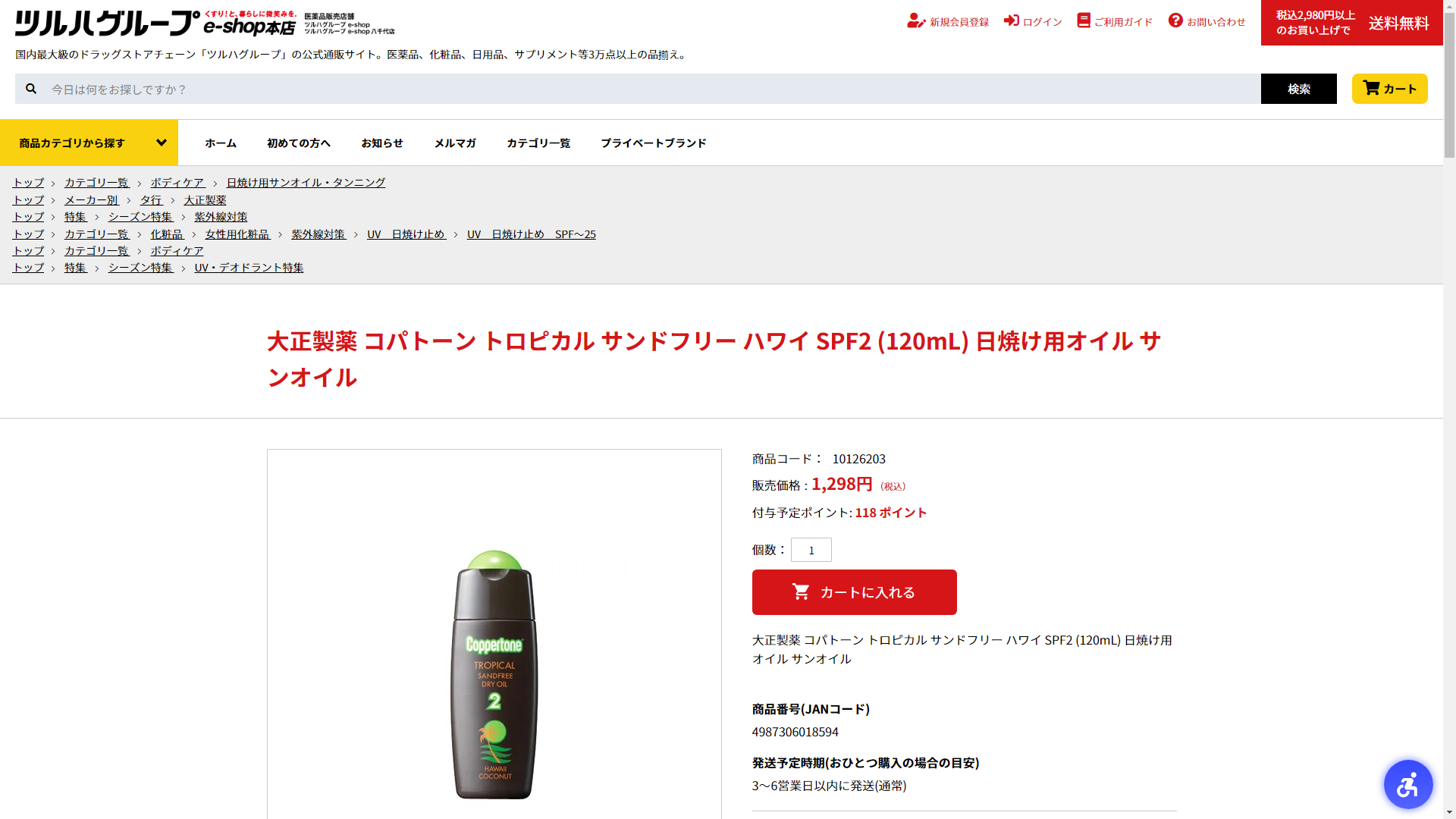 お調べしたところ現在、ツルハドラッグではサンオイルに関連する商品を買うことが可能です。