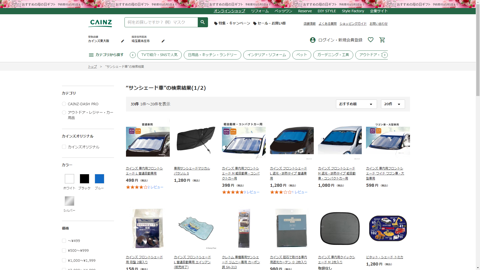 サンシェード車はCAINZに売っています