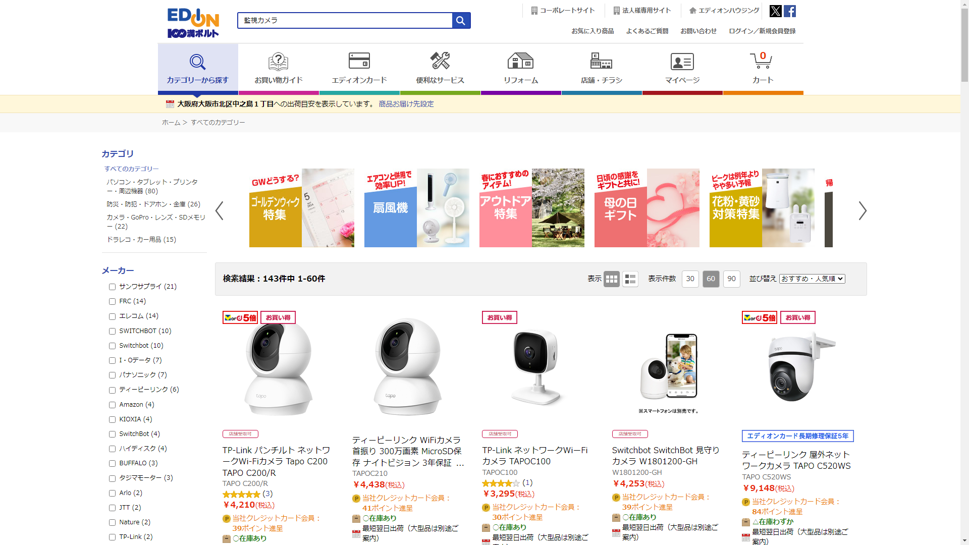 監視カメラはEDIONで販売されています
