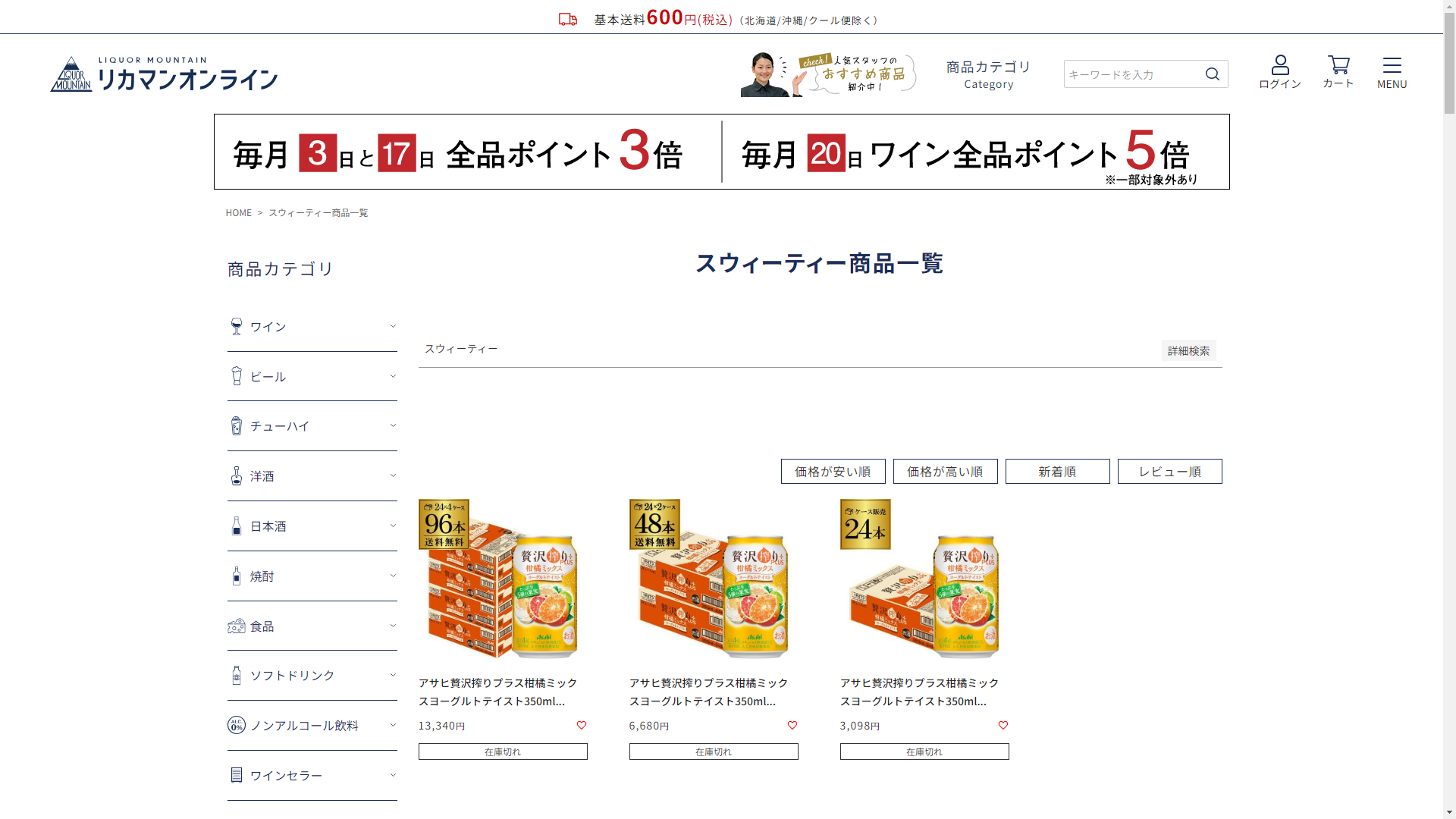 お調べしたところ現在、リカーマウンテンではスウィーティーの関連する商品が販売されています。