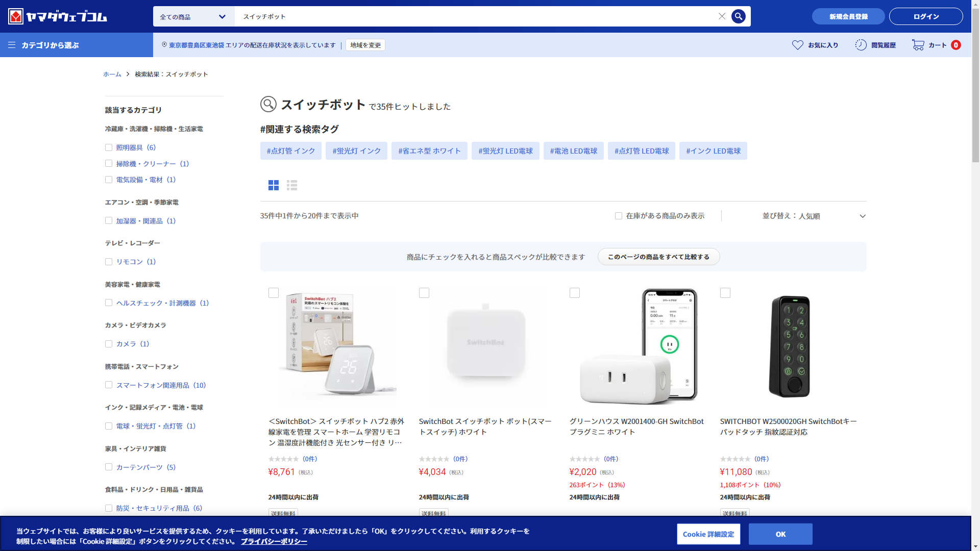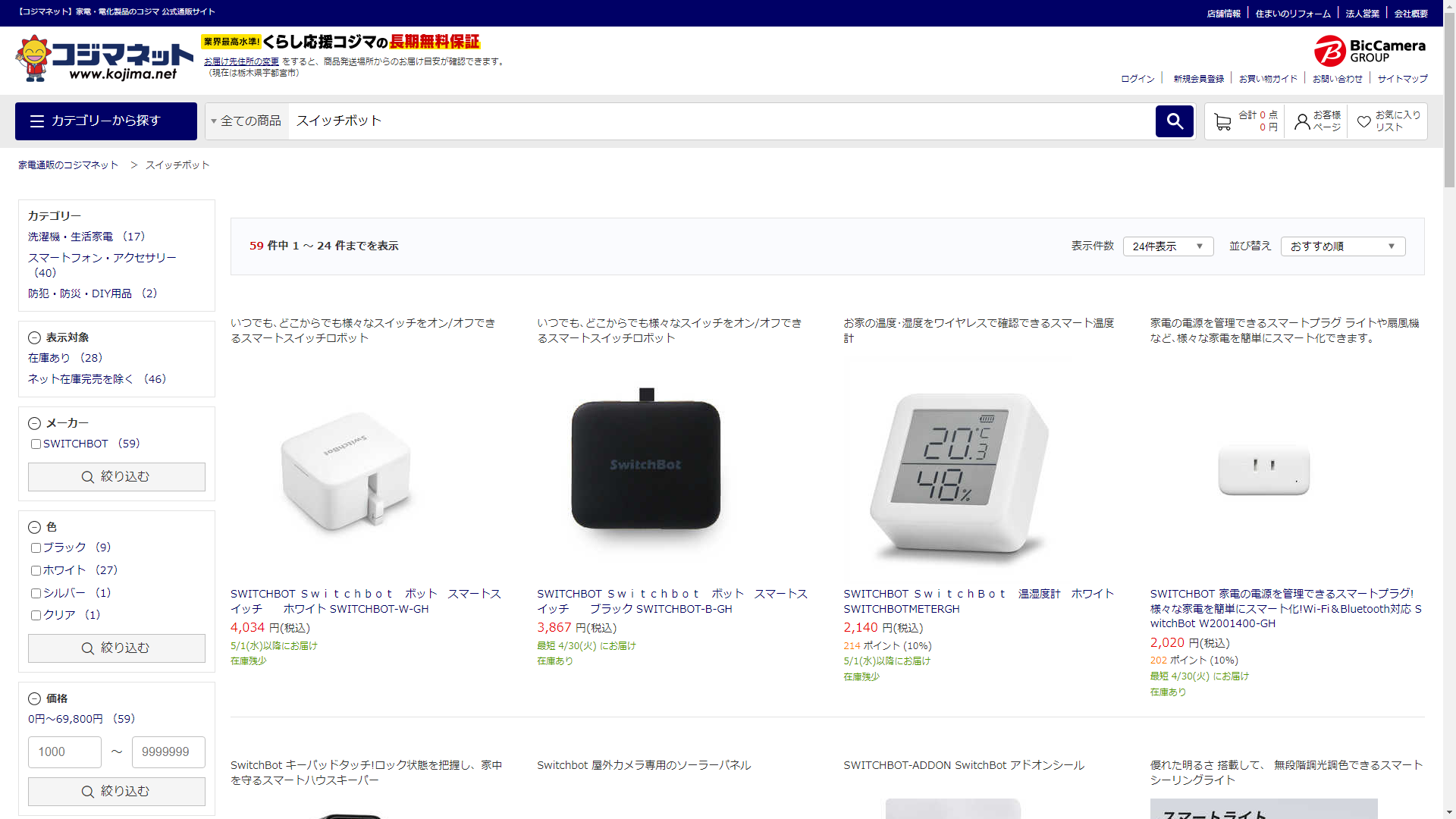 スイッチボットは家電・電化製品のコジマに売っています