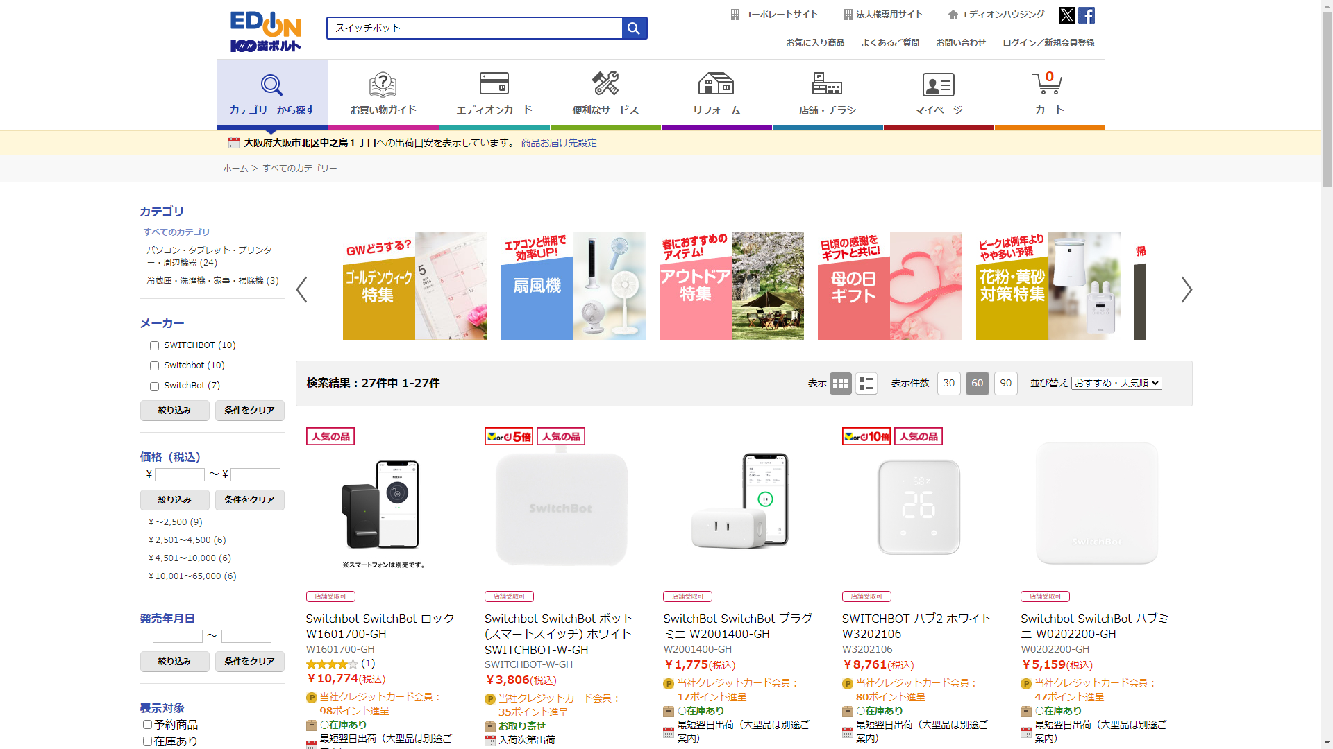 スイッチボットはEDIONで販売されています