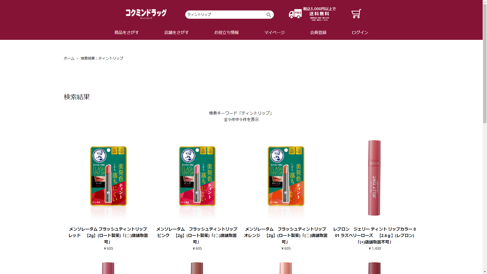 お調べしたところ現在、コクミンドラッグではティントリップの関連する商品が販売されています。