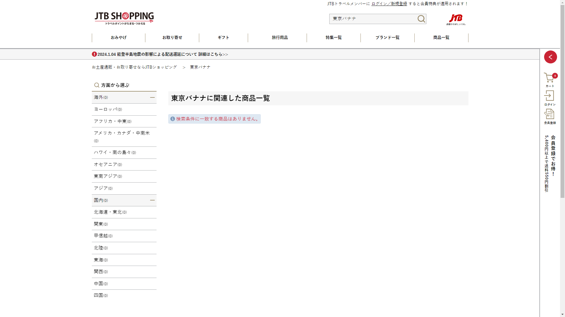 お調べしたところ残念ながら現在、空港のお土産を扱っているJTB SHOPPINGでは東京バナナに関連する商品は販売されていません。