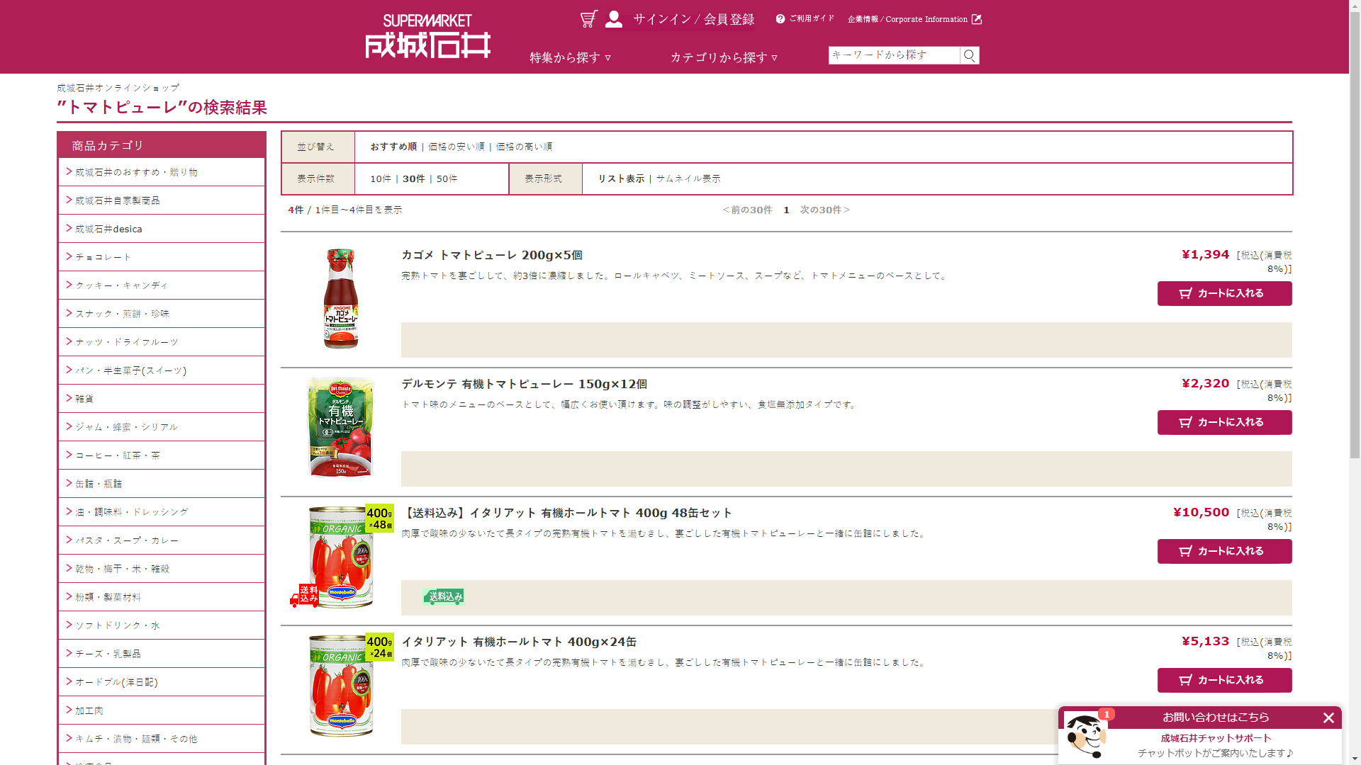 お調べしたところ現在、成城石井公式オンラインショップではトマトピューレに関連する商品を買うことが可能です。