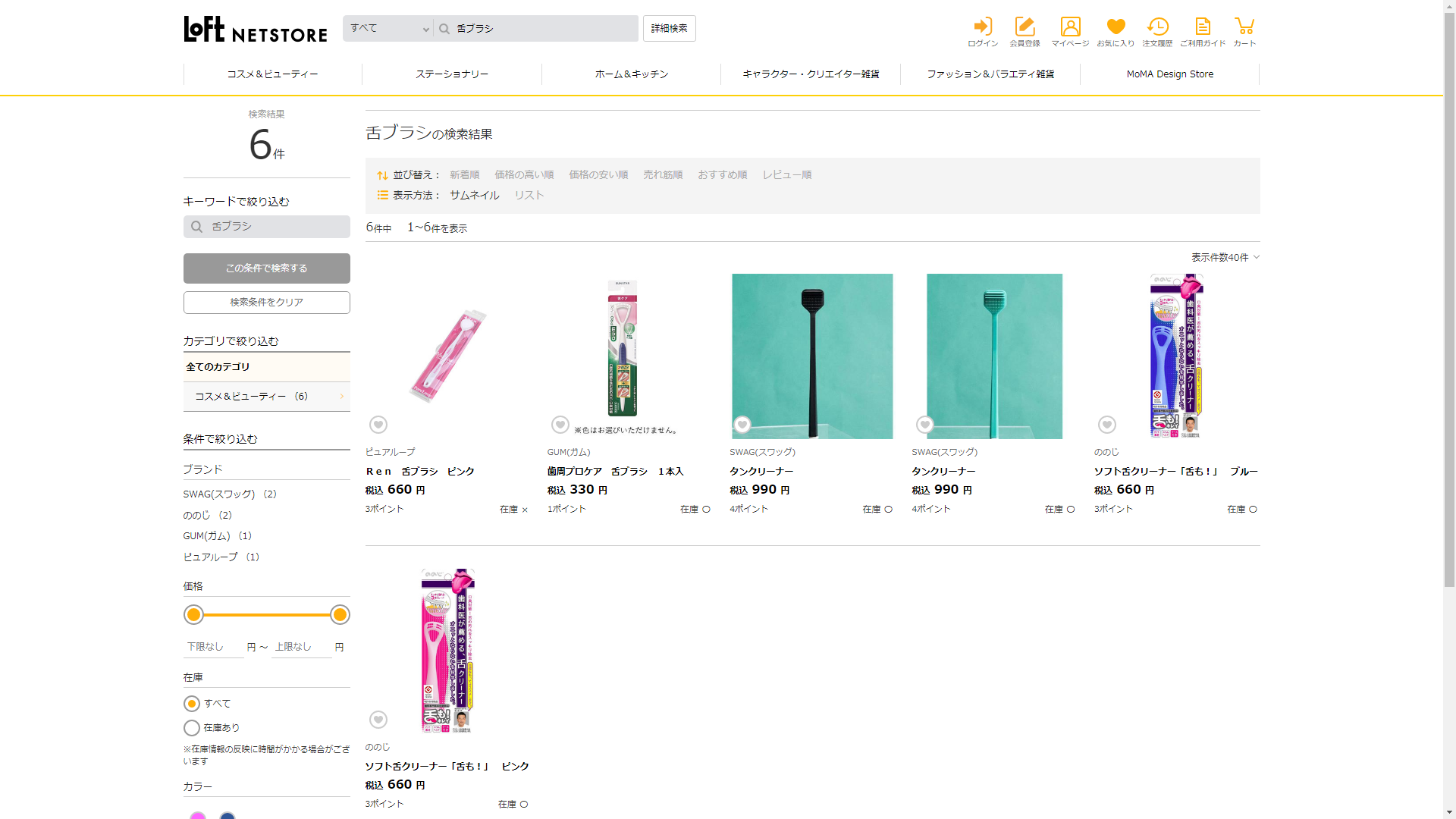 お調べしたところ現在、ロフトでは舌ブラシに関連する商品が販売されています。