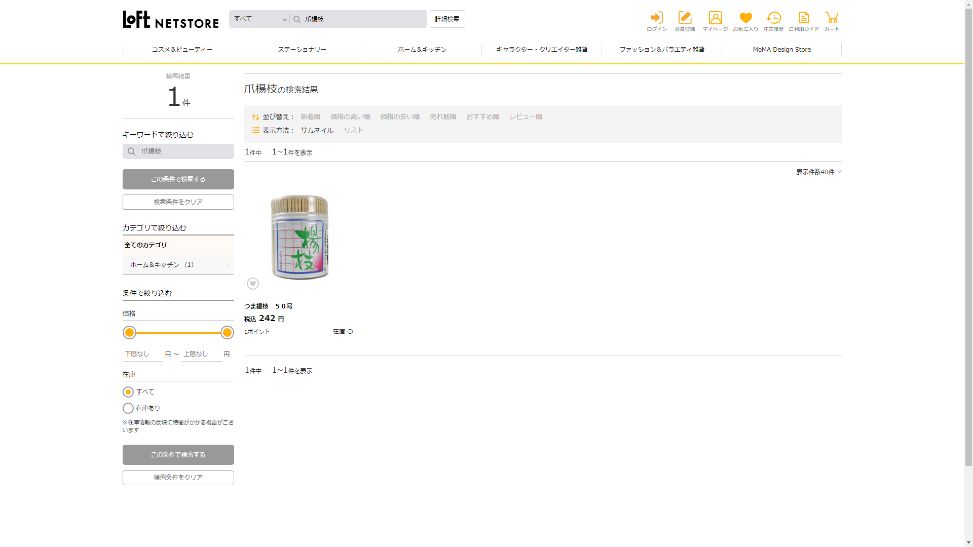お調べしたところ現在、ロフトでは爪楊枝に関連する商品が販売されています。