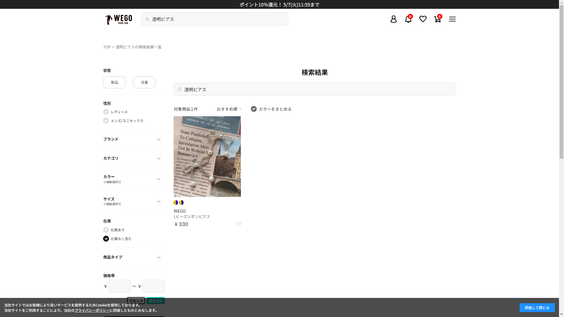 お調べしたところ残念ながら現在ではWEGOに透明ピアスは販売されていませんでした。