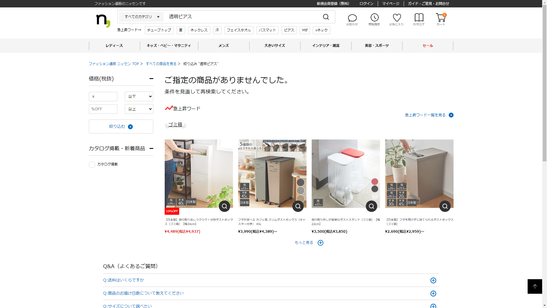 お調べしたところ残念ながら現在、ニッセンでは透明ピアスに関連する商品は販売されていません。