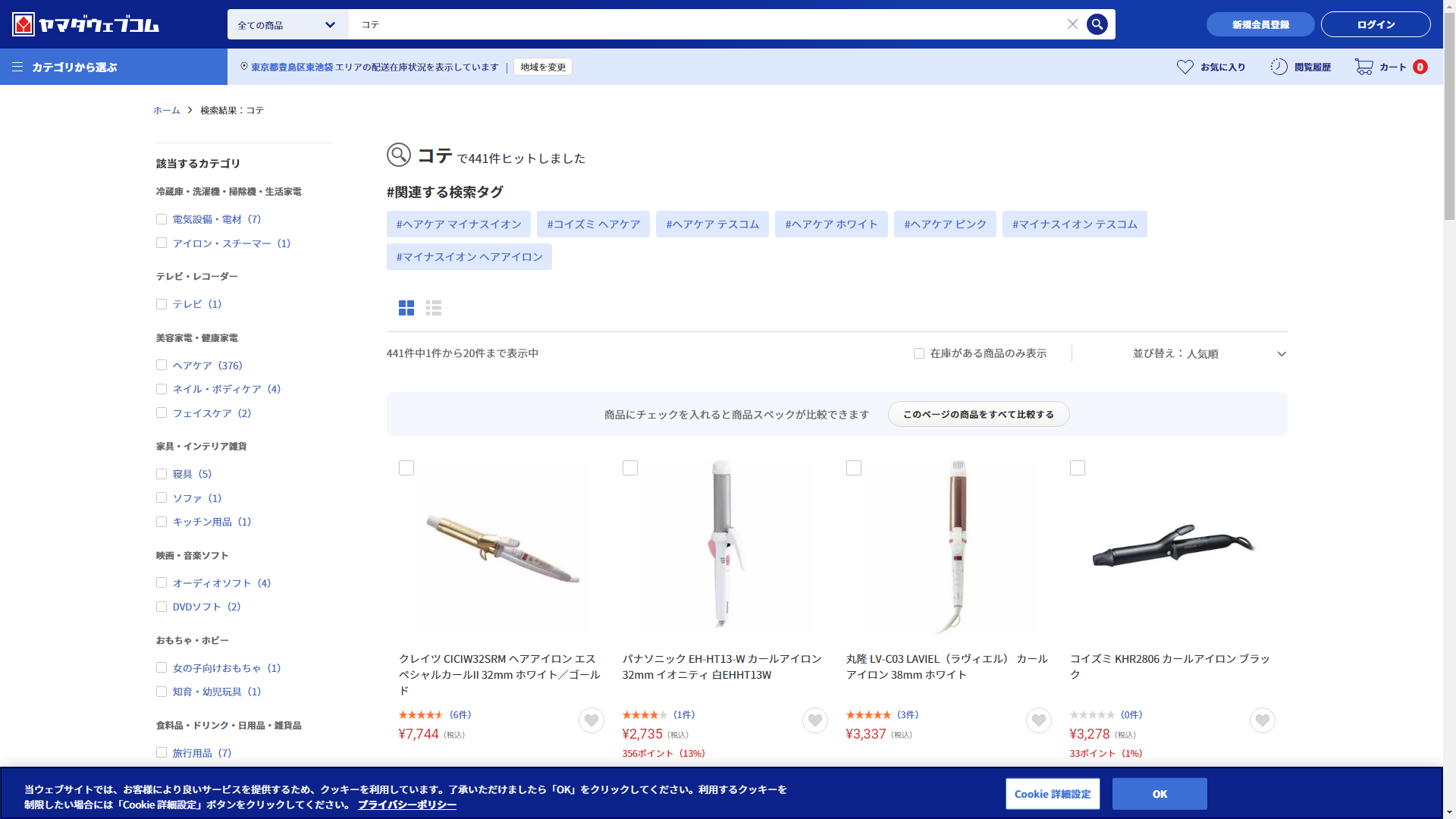 お調べしたところ現在、ヤマダデンキではコテに関連する商品を買うことが可能です。