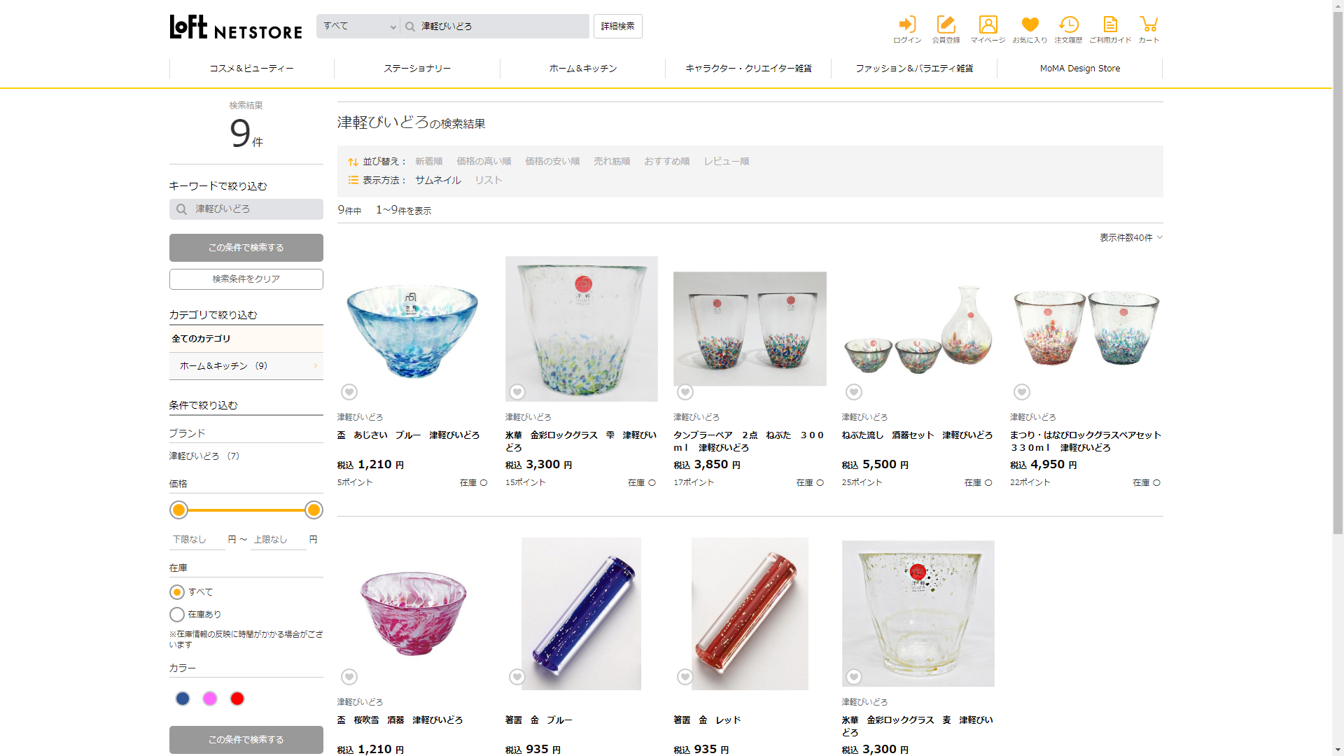 お調べしたところ現在、ロフトでは津軽びいどろに関連する商品が販売されています。