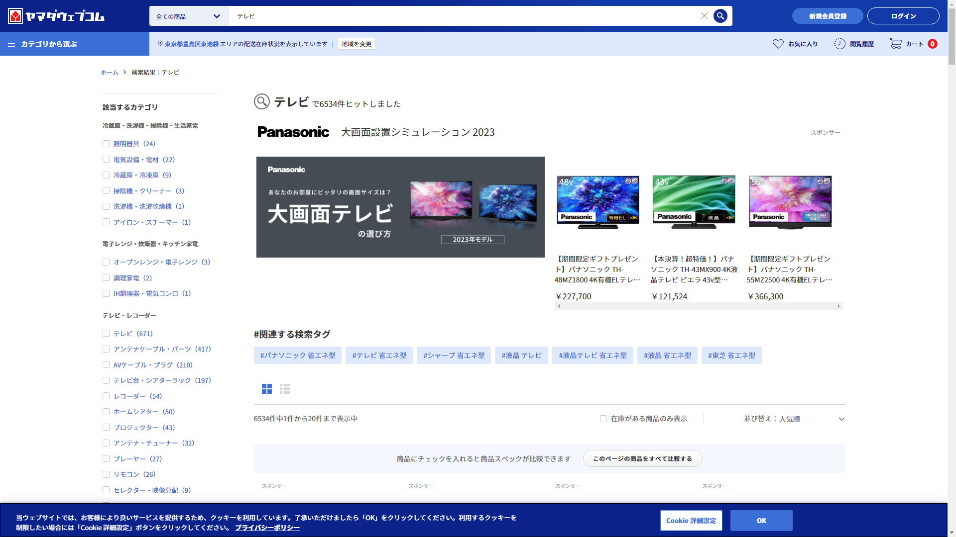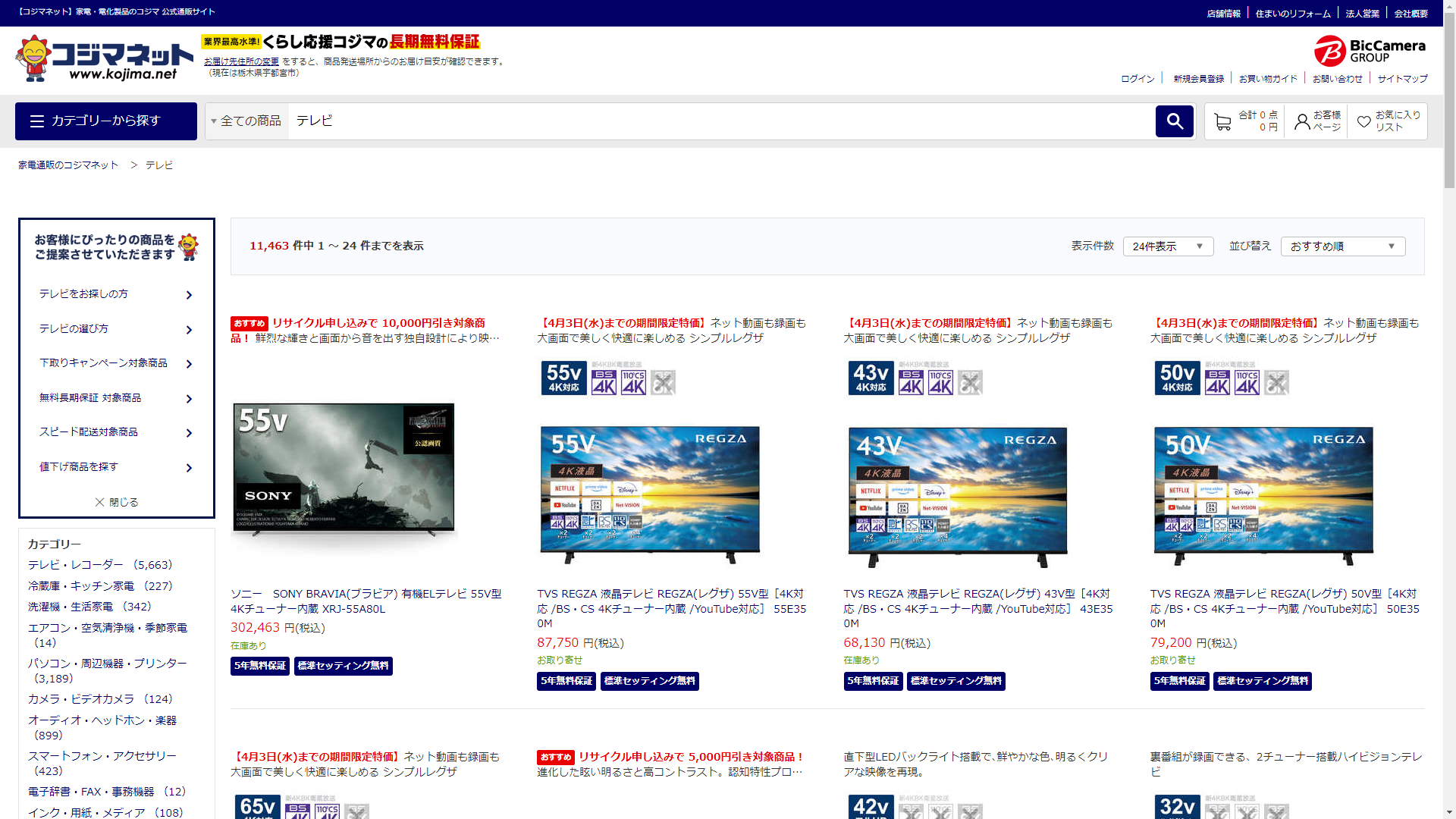 お調べしたところ現在、家電・電化製品のコジマではテレビの関連する商品が販売されています。