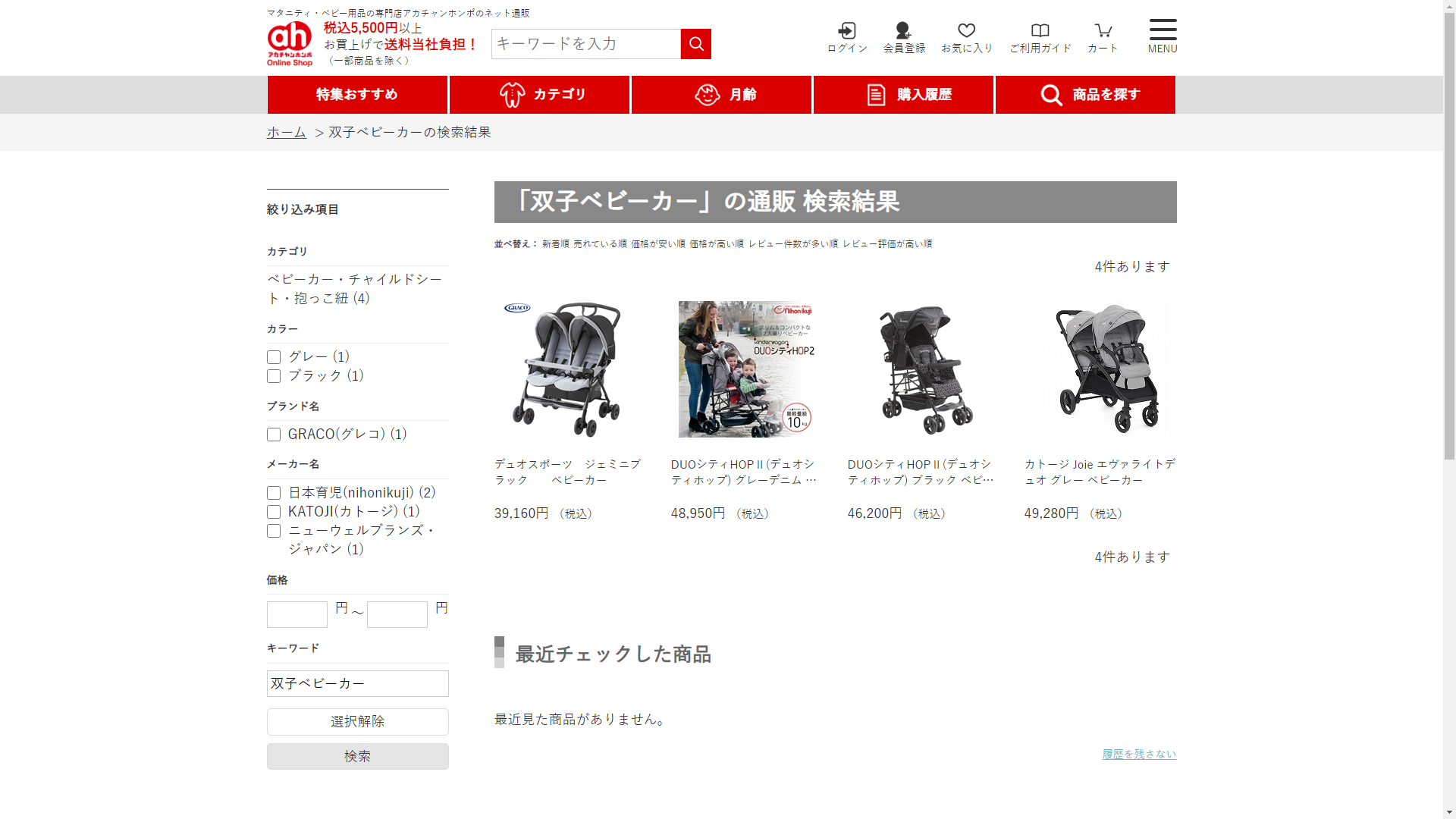 お調べしたところ現在、アカチャン本舗では双子ベビーカーの関連する商品が販売されています。