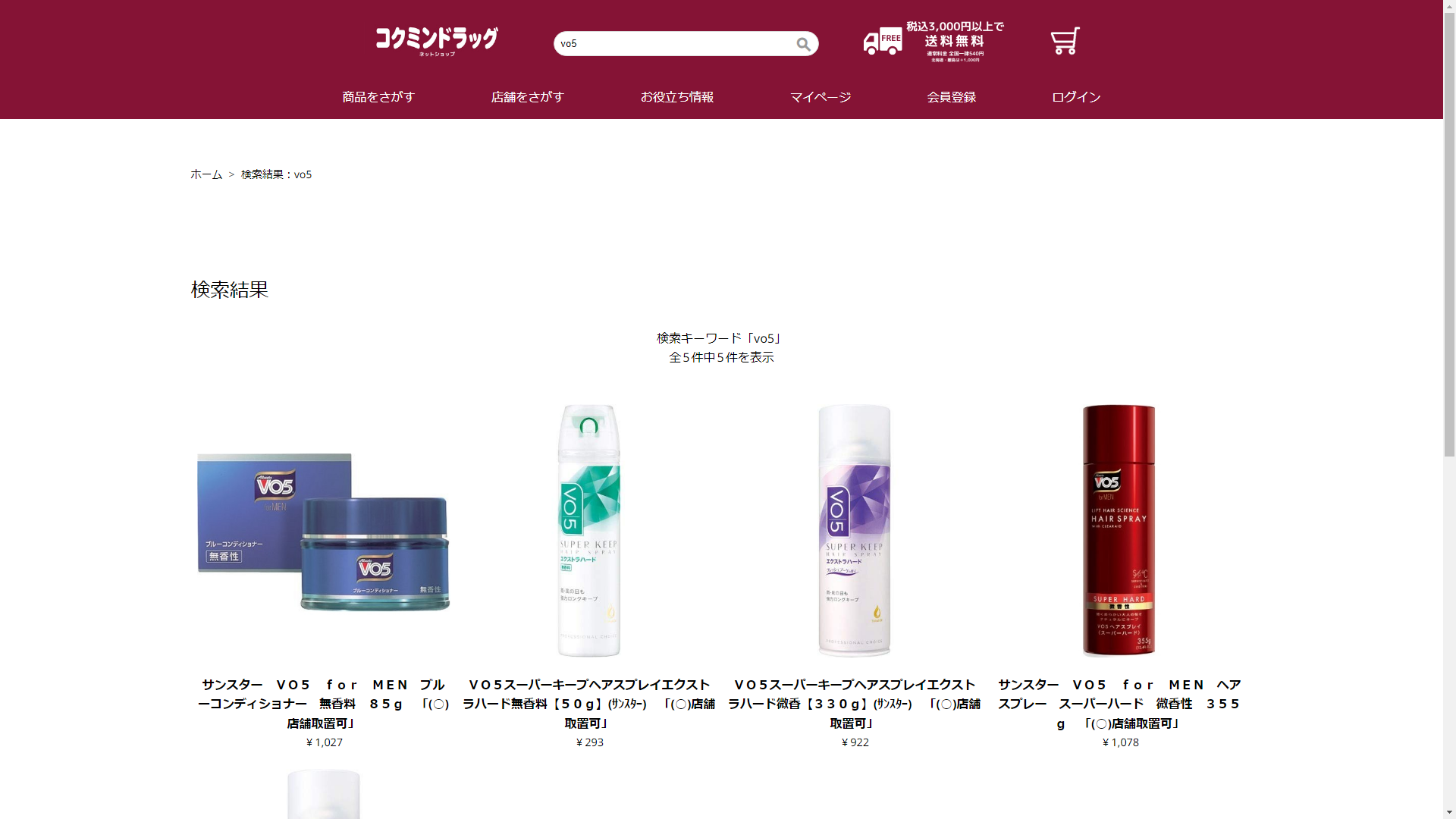 お調べしたところ現在、コクミンドラッグではvo5の関連する商品が販売されています。