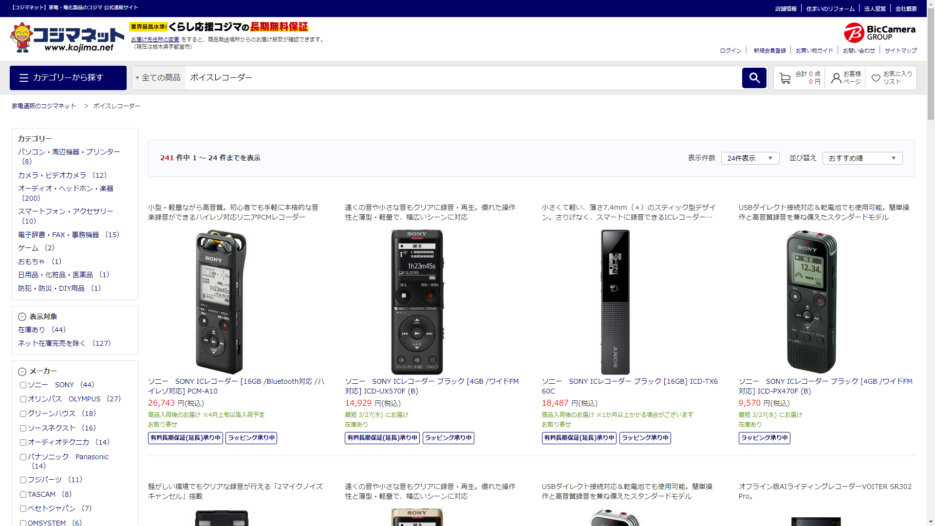 ボイスレコーダーは家電・電化製品のコジマに売っています