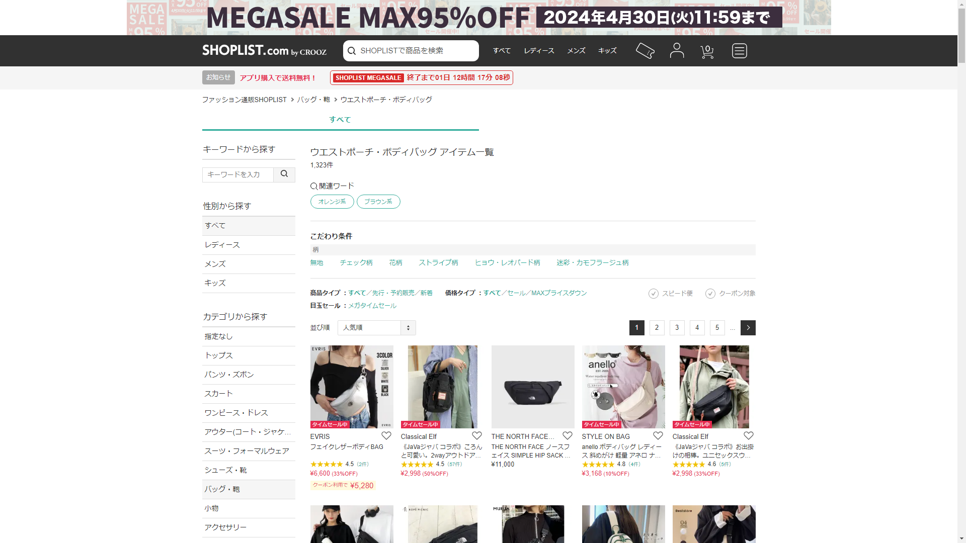 お調べしたところ現在、SHOPLISTではウエストポーチの関連する商品が販売されています。
