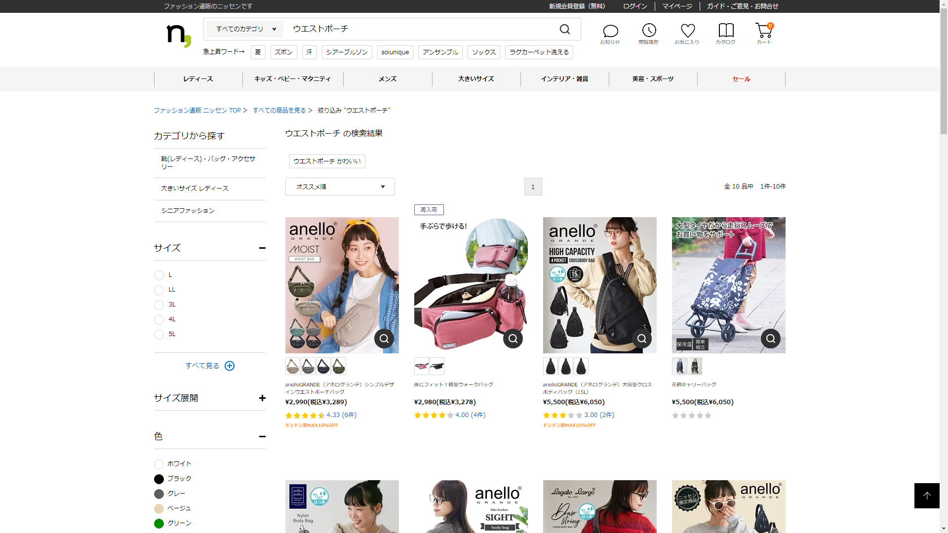 お調べしたところ現在、ニッセンではウエストポーチに関連する商品が販売されています。