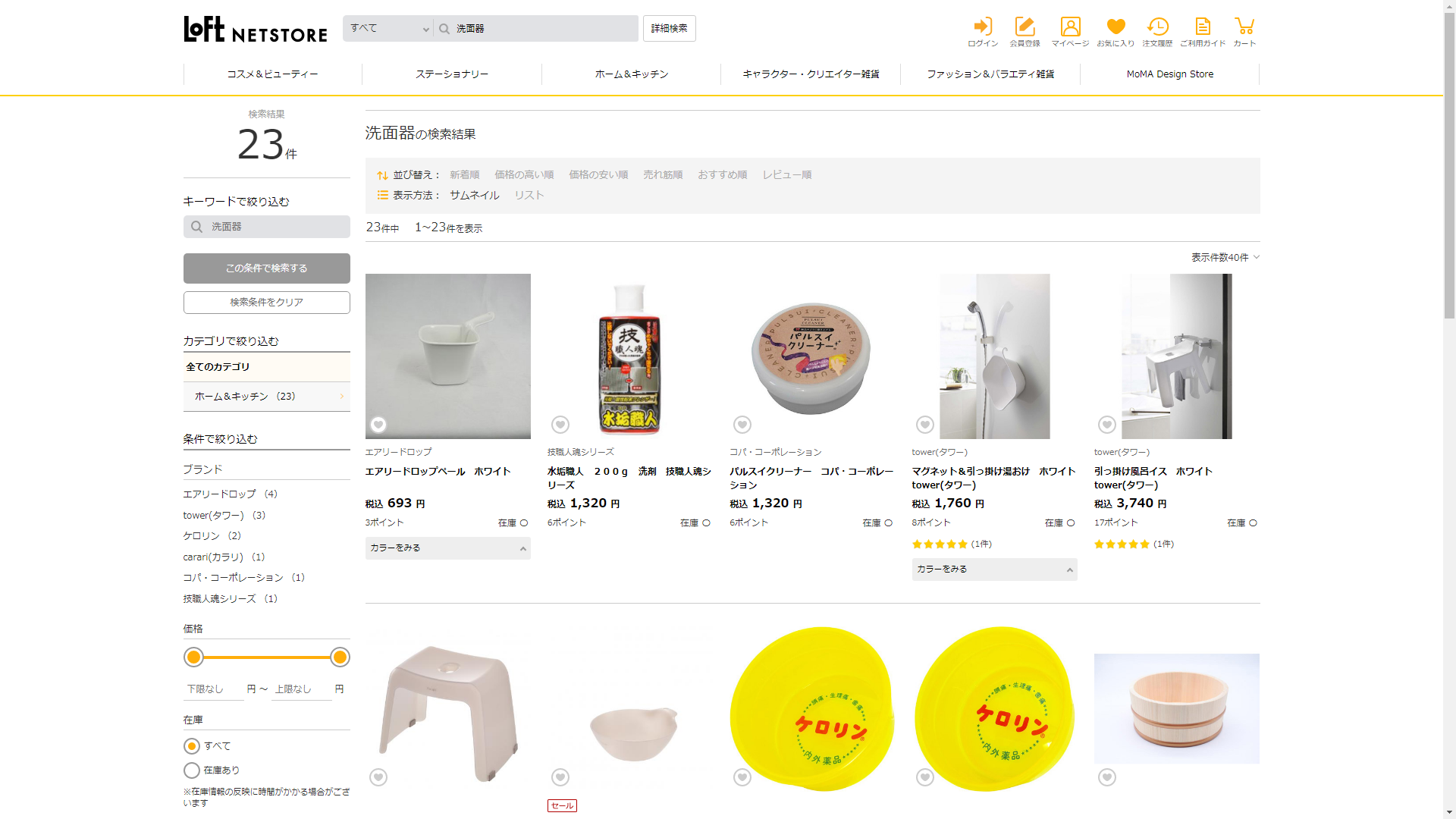 お調べしたところ現在、ロフトでは洗面器に関連する商品が販売されています。
