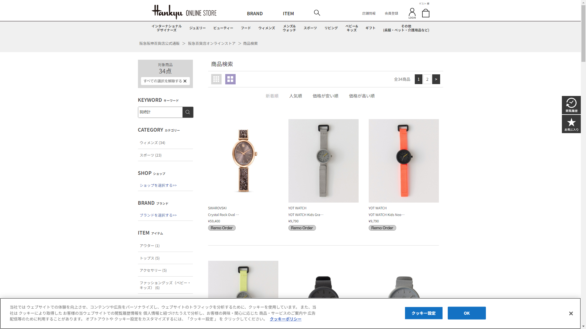 お調べしたところ現在、高島屋では腕時計の関連する商品が販売されています。