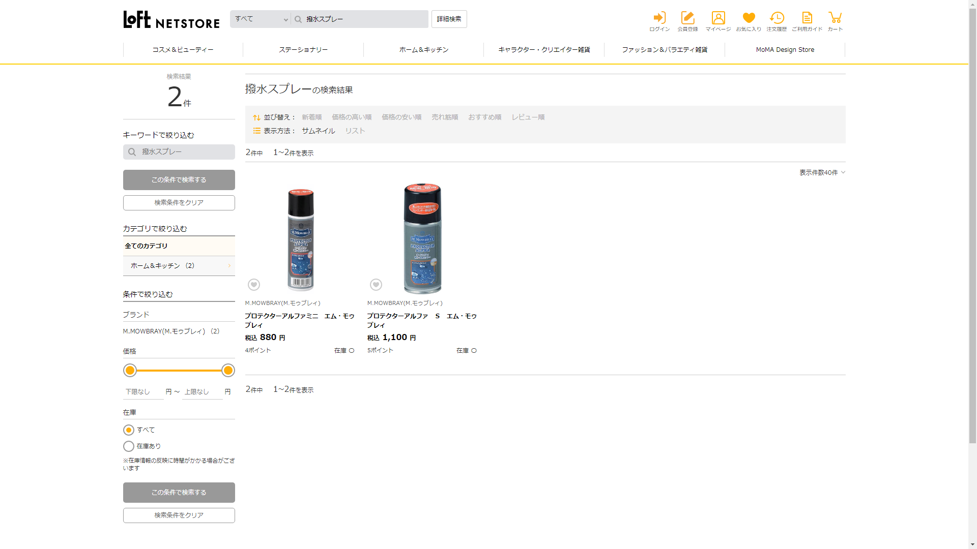 お調べしたところ現在、ロフトでは撥水スプレーに関連する商品が販売されています。