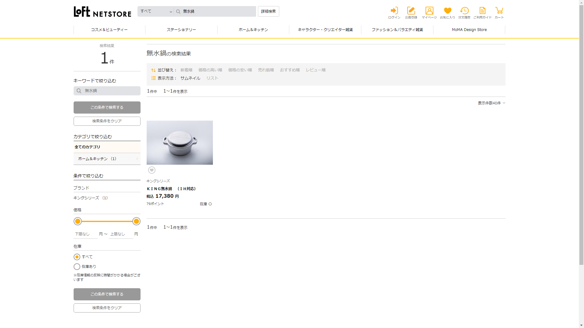 お調べしたところ現在、ロフトでは無水鍋に関連する商品が販売されています。