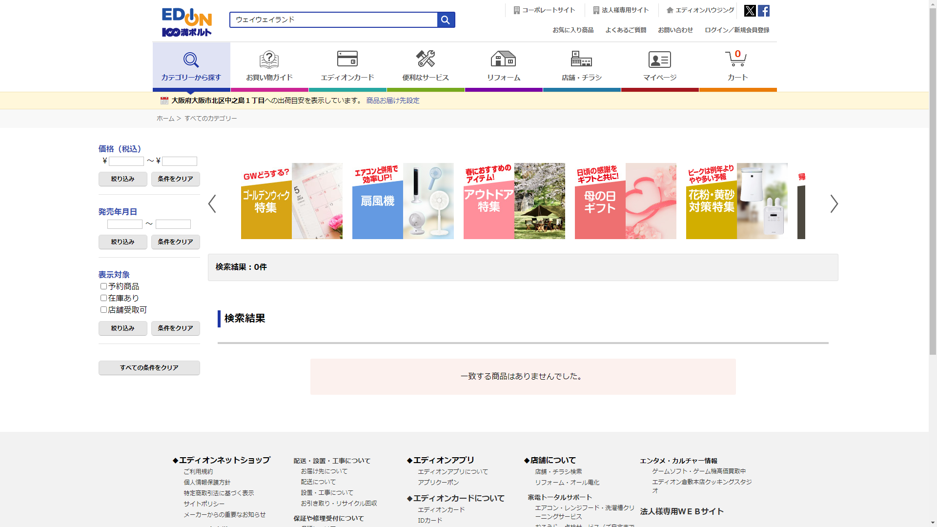 ウェイウェイランドは家電・電化製品のコジマで販売されていません